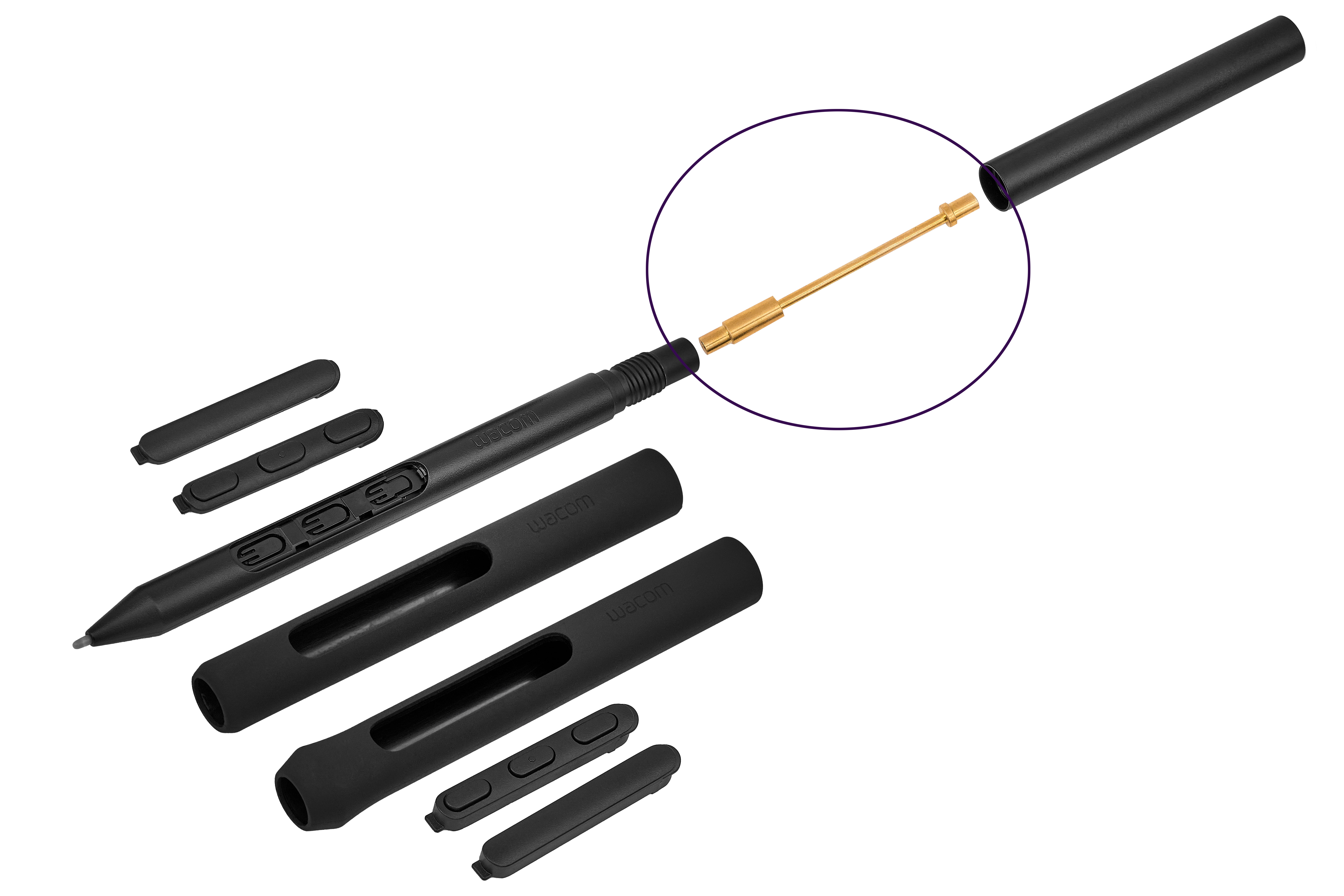 와콤 타블렛에 사용하는 디지털 펜은 사이드 버튼이 부착되어 다양한 기능을 단축키로 사용할 수 있다는 것, 다들 아시죠? 이번 프로 펜 3에는 무려 사이드 버튼이 3개나 달려 있답니다. 하지만 사이드 버튼이 불편하게 느껴져서 사용하시는 분들도 있는데요, 이번에는 사이드 버튼을 사용하지 않는 경우를 위해 탈부착 가능한 옵션도 추가되었어요.