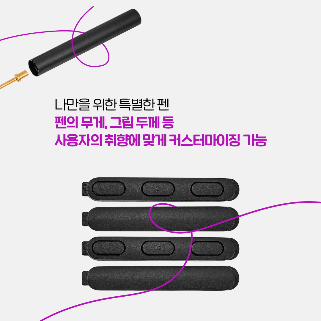 천차만별의 펜 취향, 이제는 디지털 펜도 커스텀하는 시대! 이전 모델과 다르게 프로 펜 3는 커스터마이징이 가능한 특별한 펜이랍니다. 펜의 사이드 버튼과 그립, 무게 추 등의 옵션을 취향에 맞게 조절해서 총 36가지의 선택지 중에서 나만의 펜을 선택할 수 있어요.