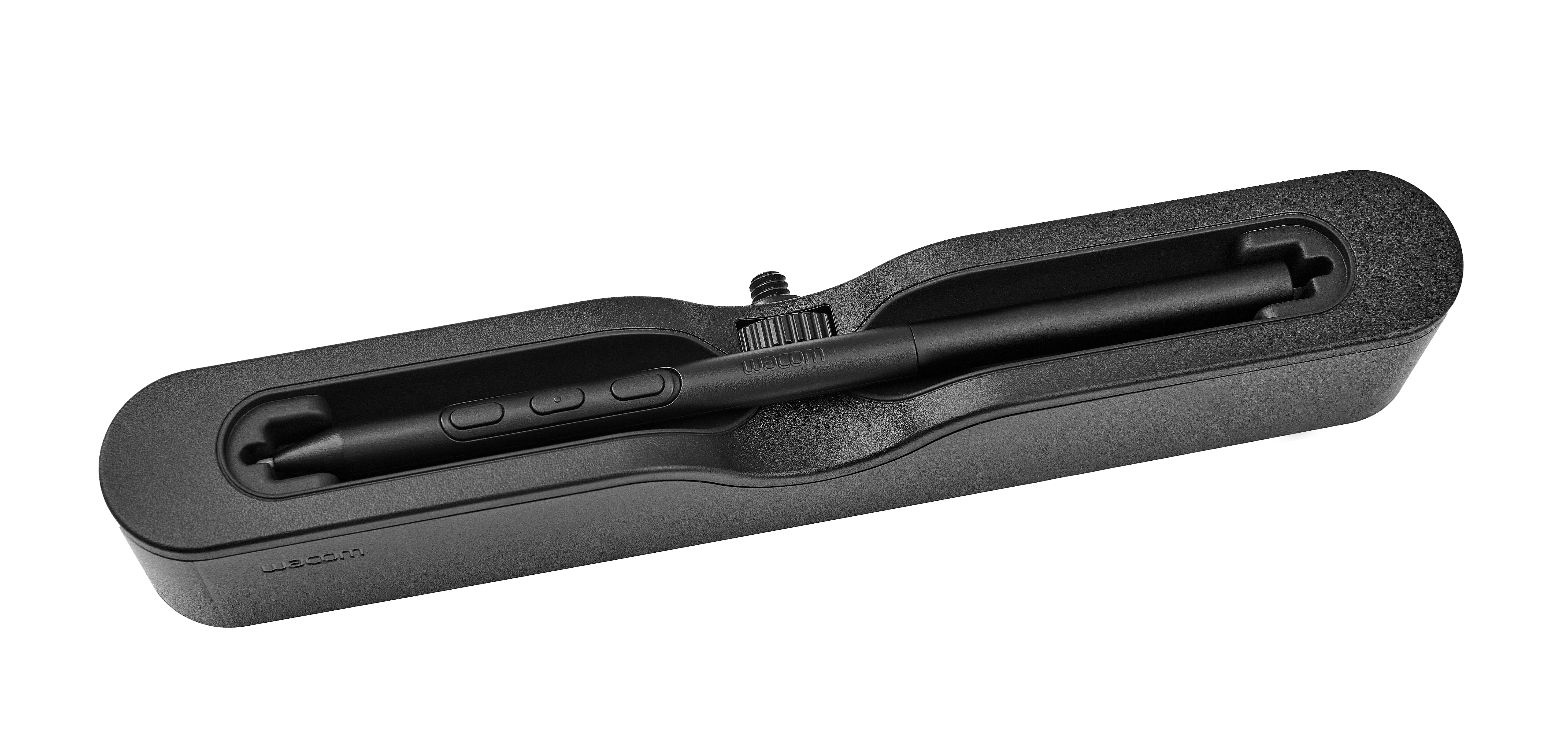 위 사진은 신티크 프로 27에서 사용 가능한 펜 보관함과 프로 펜 3입니다. 이전 모델에도 펜을 거치할 수 있는 기능은 존재했지만, 신티크 프로 27은 본격적으로 펜을 보관할 수 있는 펜 보관함을 따로 마련했어요. 측면에 달려있는 나사를 이용해서 타블렛 본체와 연결할 수도 있답니다. 보관함 연결에 대해서는 다른 게시물에서 더 자세히 소개할 예정이에요.