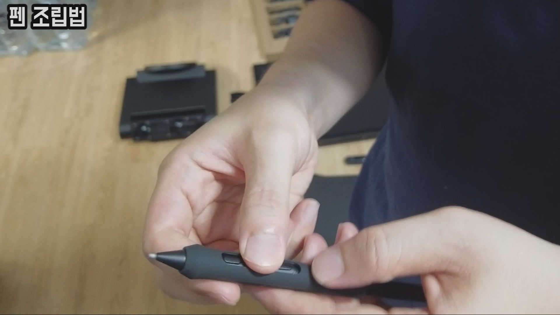 왼쪽은 와콤 프로 펜 3의 기본 상태인데요, 자신만의 스타일에 맞추어 펜 설정을 변경할 수 있어요. 얇은 기본형이 취향에 맞지 않으면, 오른쪽 사진처럼 그립을 끼워주면 됩니다.