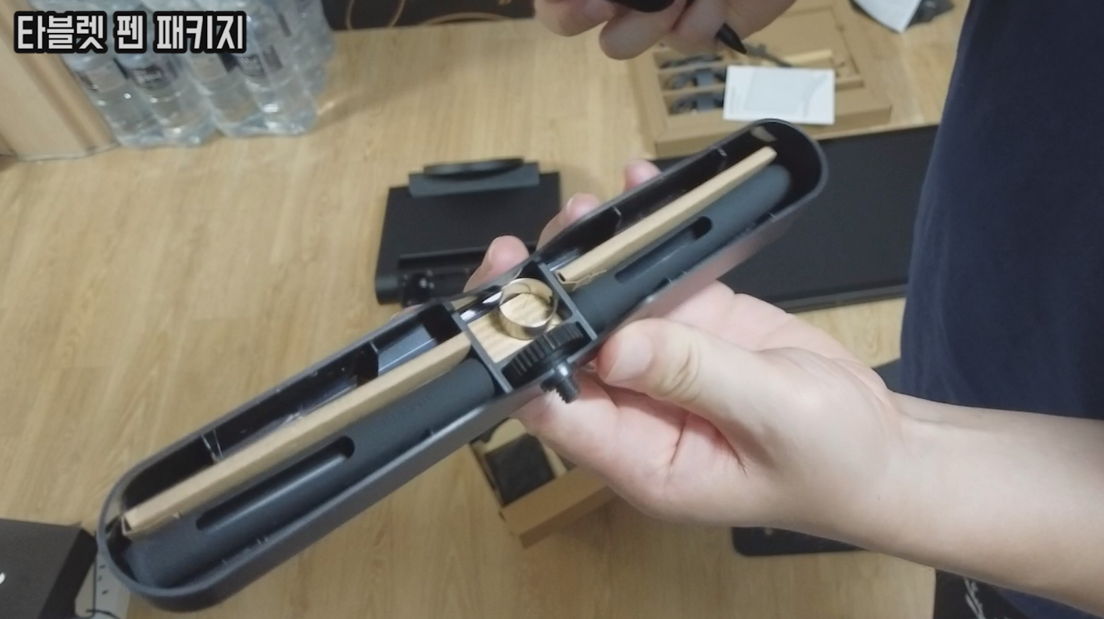 모든 펜 구성품이 들어있는 펜 보관함입니다. 최종 시판 모델이 아니라서 실제 판매하는 모델과는 조금 차이가 있는 점 참고해주세요. 조립할 수 있는 프로 펜 3, 무게 추, 두 가지의 추가 그립, 사이드 버튼, 마지막으로 펜심이 들어 있어요. 와콤 프로 펜 3의 가장 큰 장점인 커스터마이징을 통해 다양한 창작 작업을 할 수 있습니다. 커스텀 가능한 옵션은 총 36가지로 정말 다양해요.