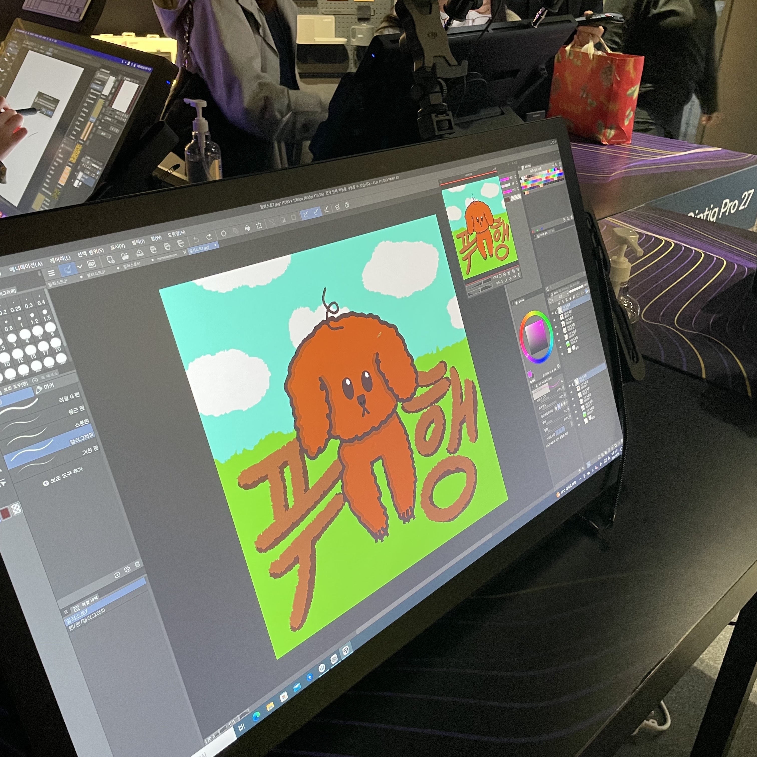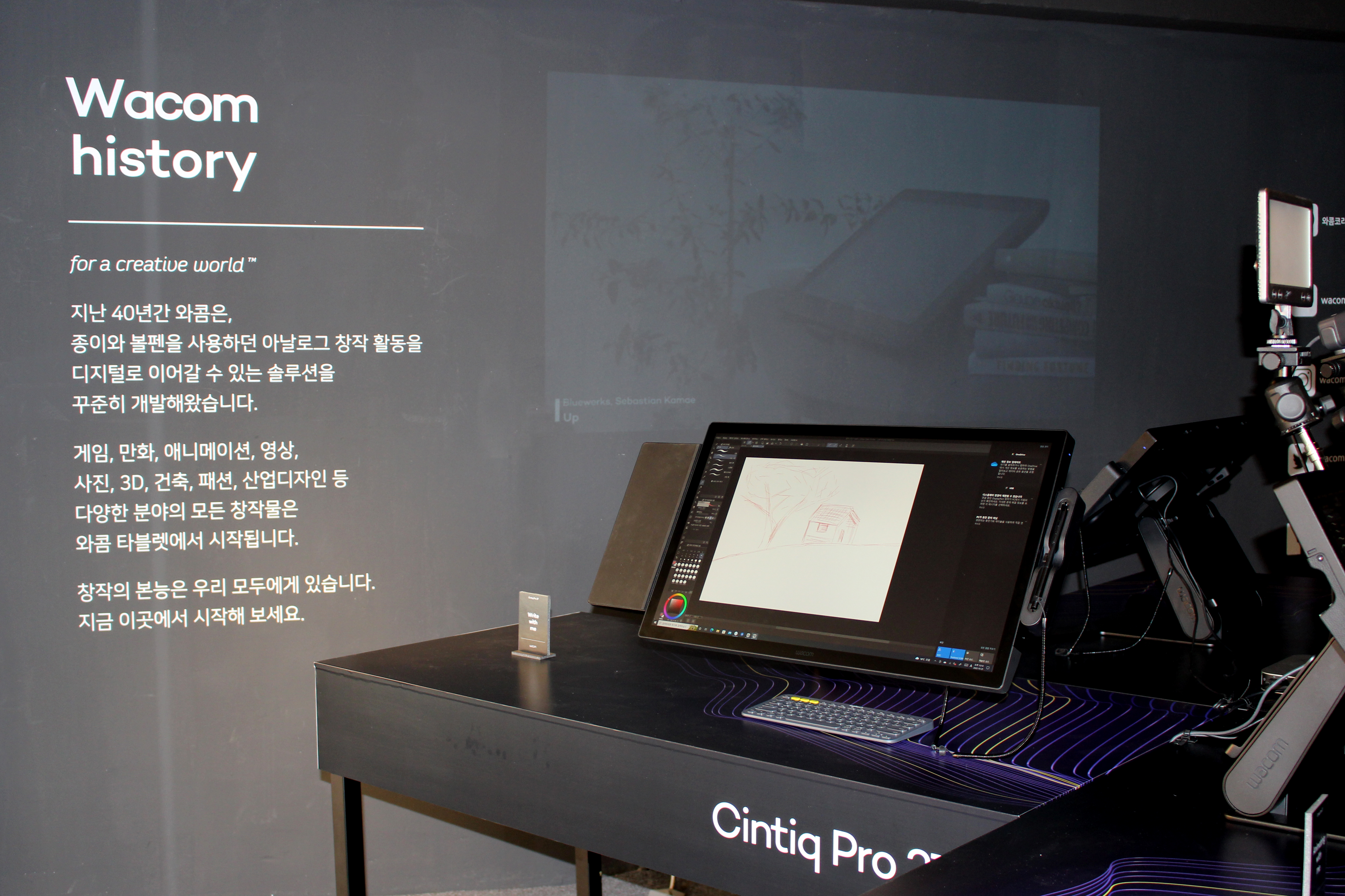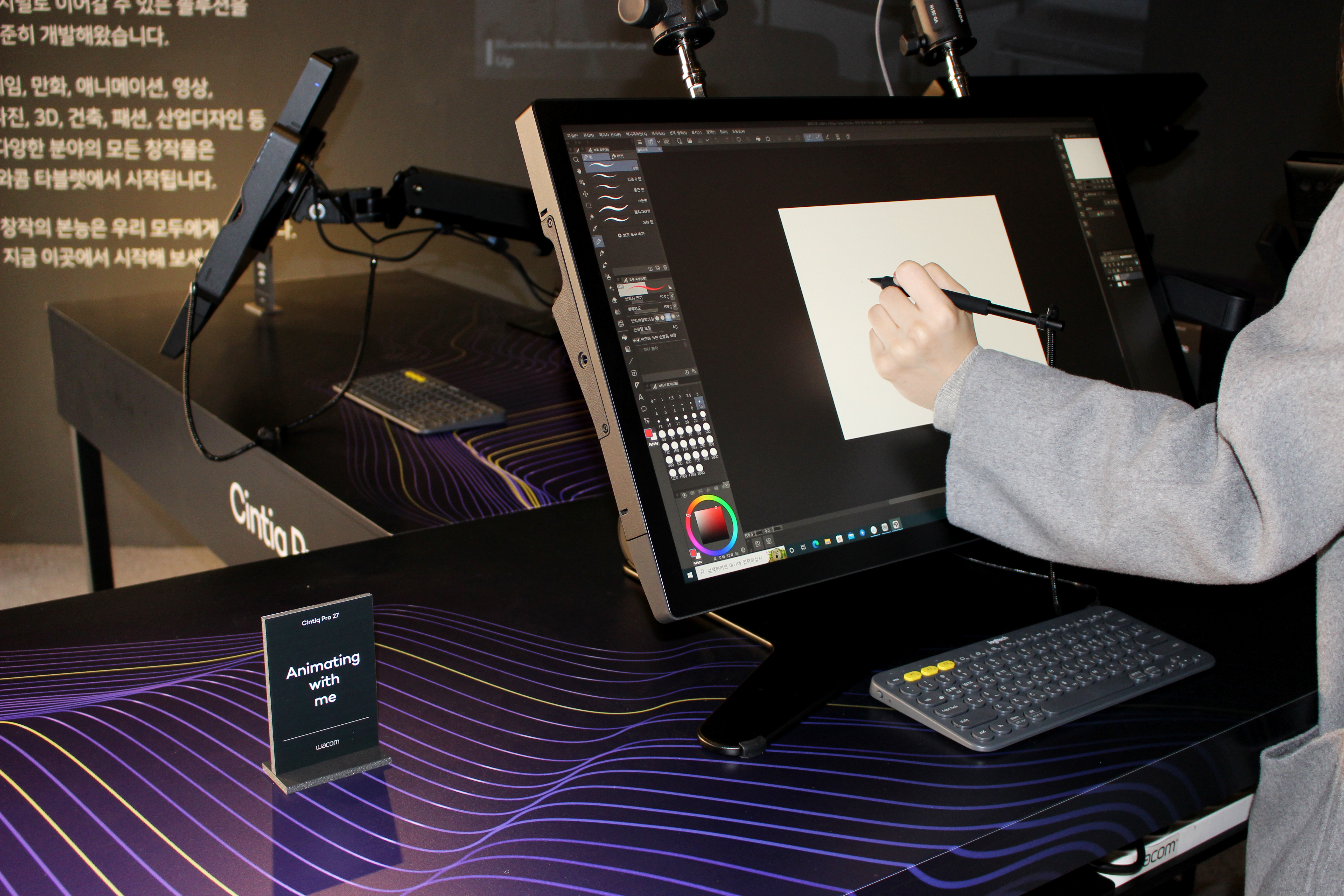 방문객들은 현장에서 신티크 프로 27을 이용해 간단한 드로잉과 필기 등을 체험했습니다. 신티크 프로 27의 부드러운 펜 사용감과 멀티 터치 기능, 빠른 반응 속도에 감탄하는 분들이 많았어요. 기존 와콤 팬분들도 신티크 프로 27의 업그레이드된 성능을 직접 느끼고 가셨습니다.