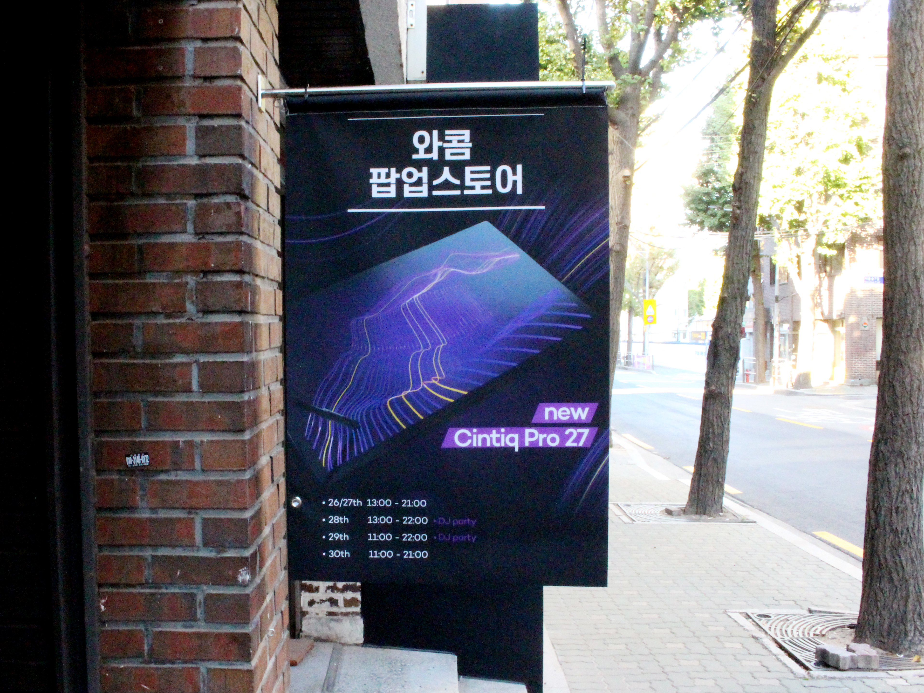 2호선 뚝섬역과 분당선 서울숲역에서 내려 도보로 멀지 않은 곳에 위치한 프로젝트 렌트 2호점. 누가봐도 '와콤 팝업스토어'라는 것을 알 수 있는 현수막이 팝업스토어 앞에 걸려 있습니다.