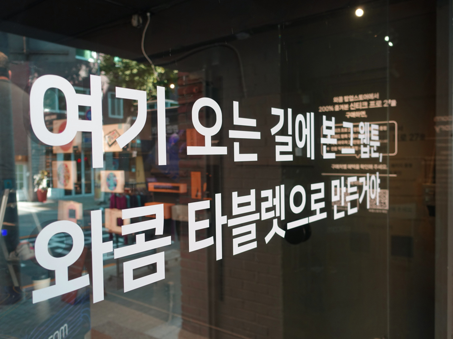 벽에 쓰여있는 문구가 보이시나요? '여기 오는 길에 본 그 웹툰, 와콤 타블렛으로 만든 거야'