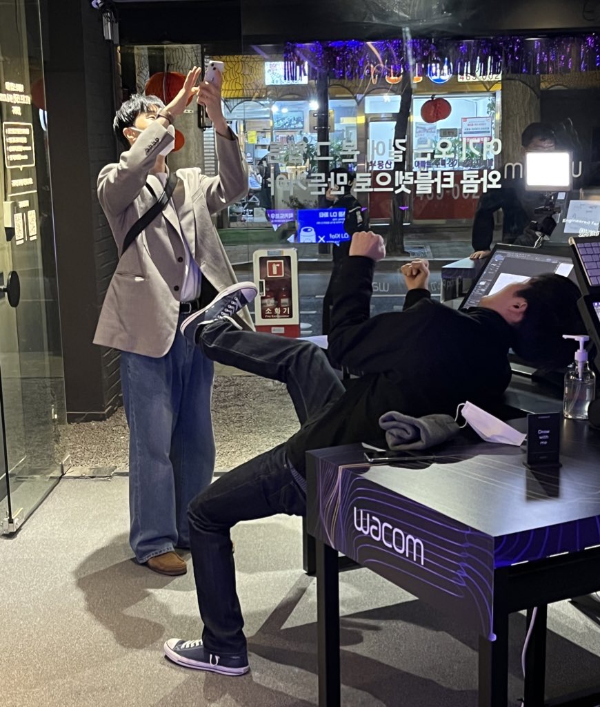 벽에 쓰여있는 문구가 보이시나요? '여기 오는 길에 본 그 웹툰, 와콤 타블렛으로 만든 거야'