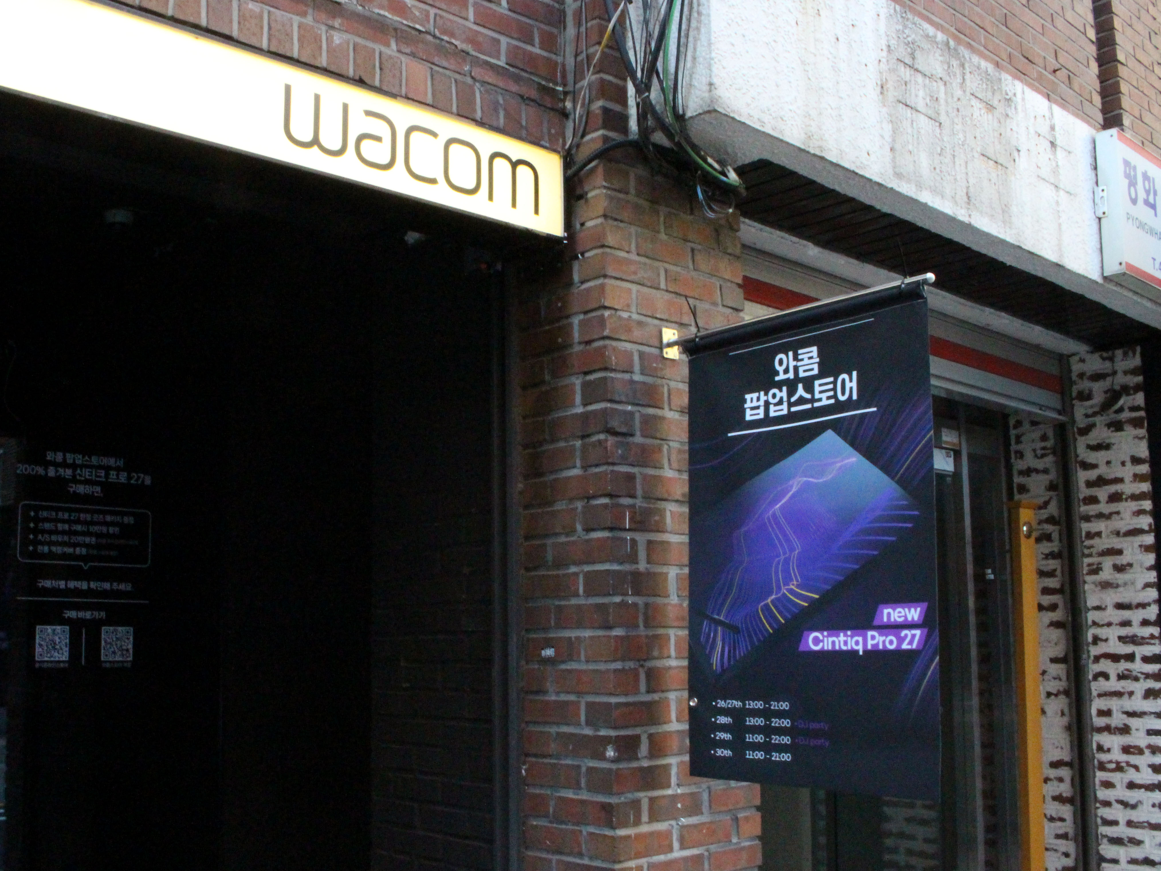 2호선 뚝섬역과 분당선 서울숲역에서 내려 도보로 멀지 않은 곳에 위치한 프로젝트 렌트 2호점. 누가봐도 '와콤 팝업스토어'라는 것을 알 수 있는 현수막이 팝업스토어 앞에 걸려 있습니다.