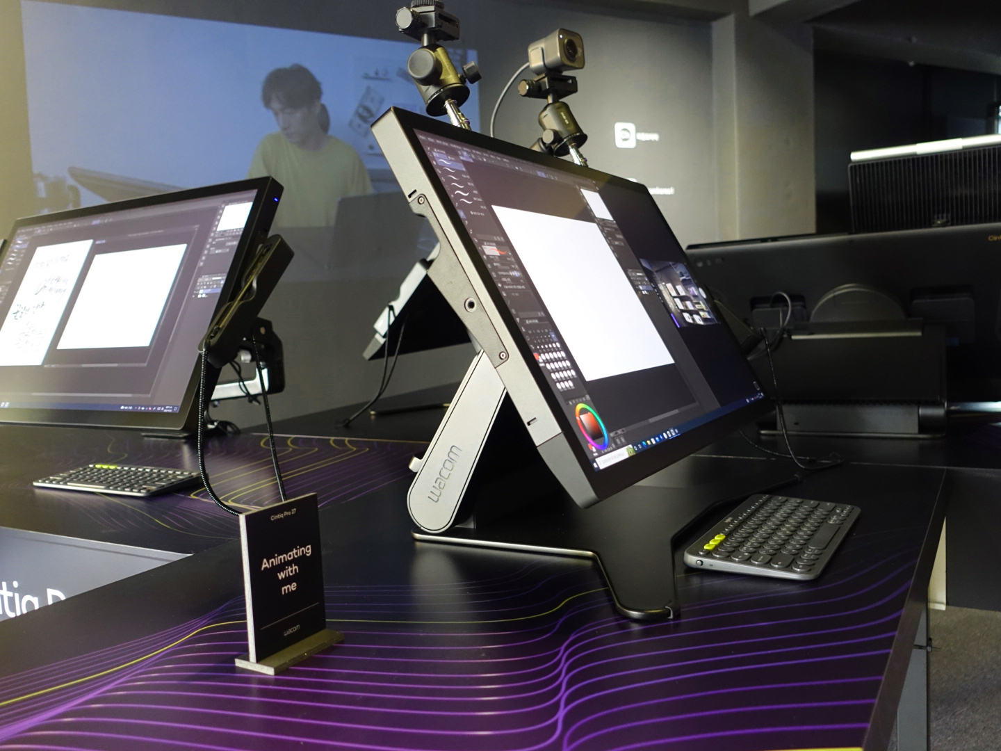 방문객들은 현장에서 신티크 프로 27을 이용해 간단한 드로잉과 필기 등을 체험했습니다. 신티크 프로 27의 부드러운 펜 사용감과 멀티 터치 기능, 빠른 반응 속도에 감탄하는 분들이 많았어요. 기존 와콤 팬분들도 신티크 프로 27의 업그레이드된 성능을 직접 느끼고 가셨습니다.