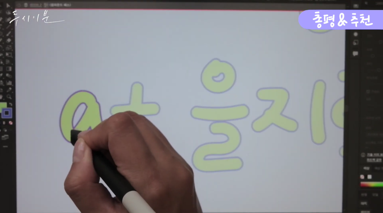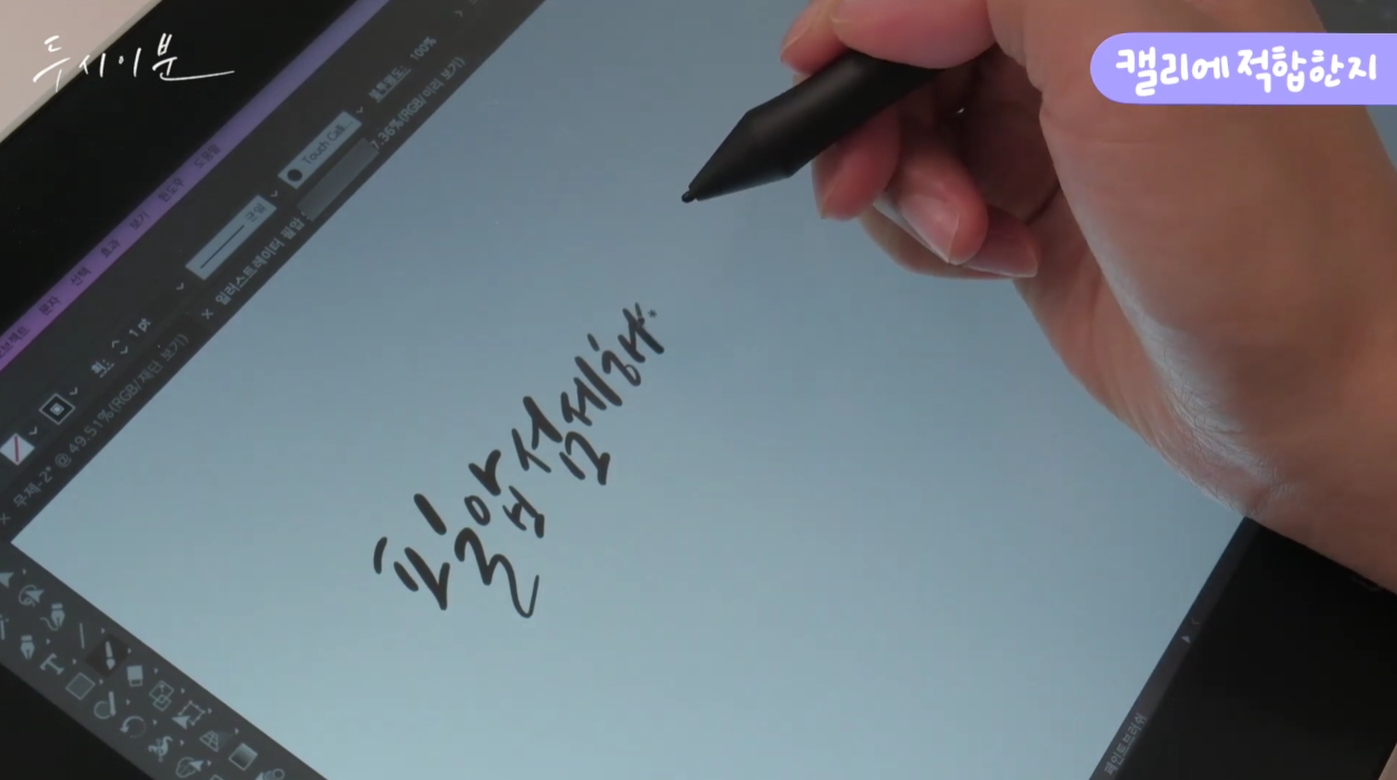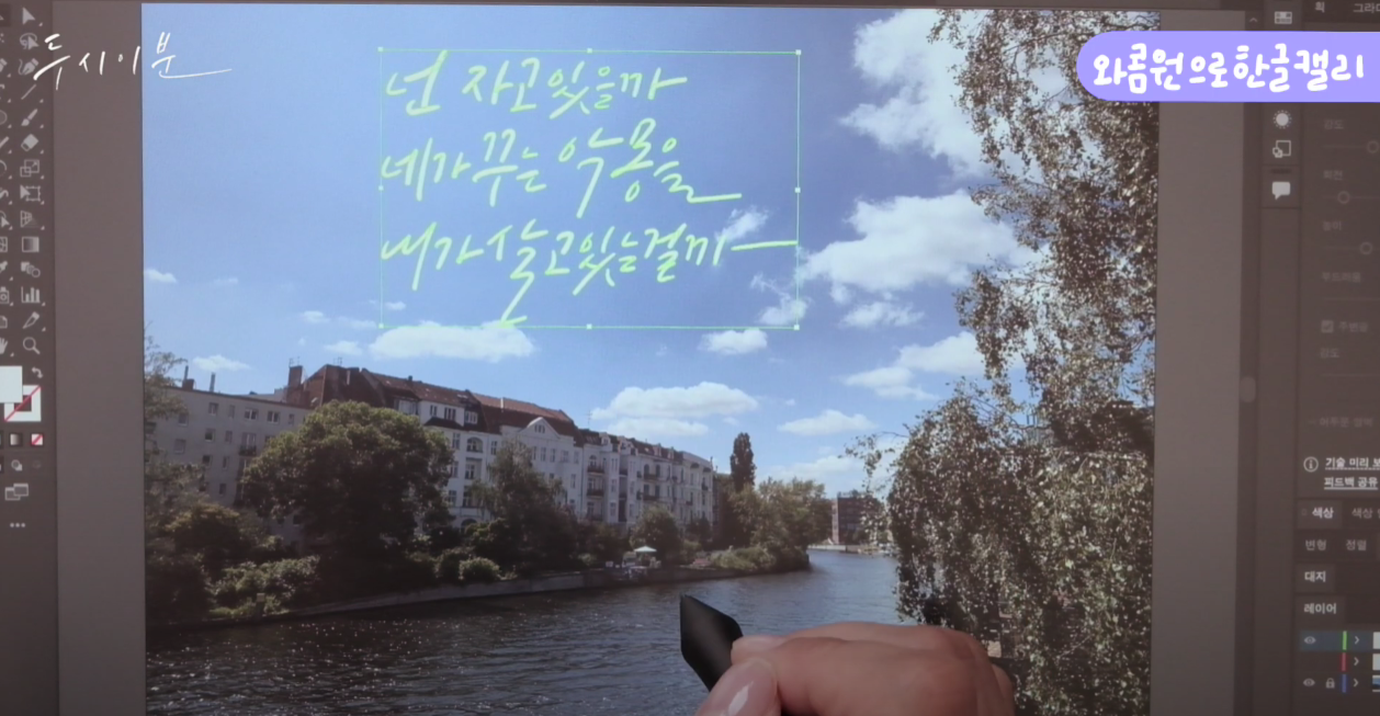 두시이분님은 사진 위에 캘리그라피를 하는 작업을 주로 하기 때문에, 이미 써놓은 글씨 크기를 조절해야 할 일이 많습니다. 이런 크기 조절 작업도 마우스로 하는 것보다 펜을 사용하니 더 간편했다고 해요.