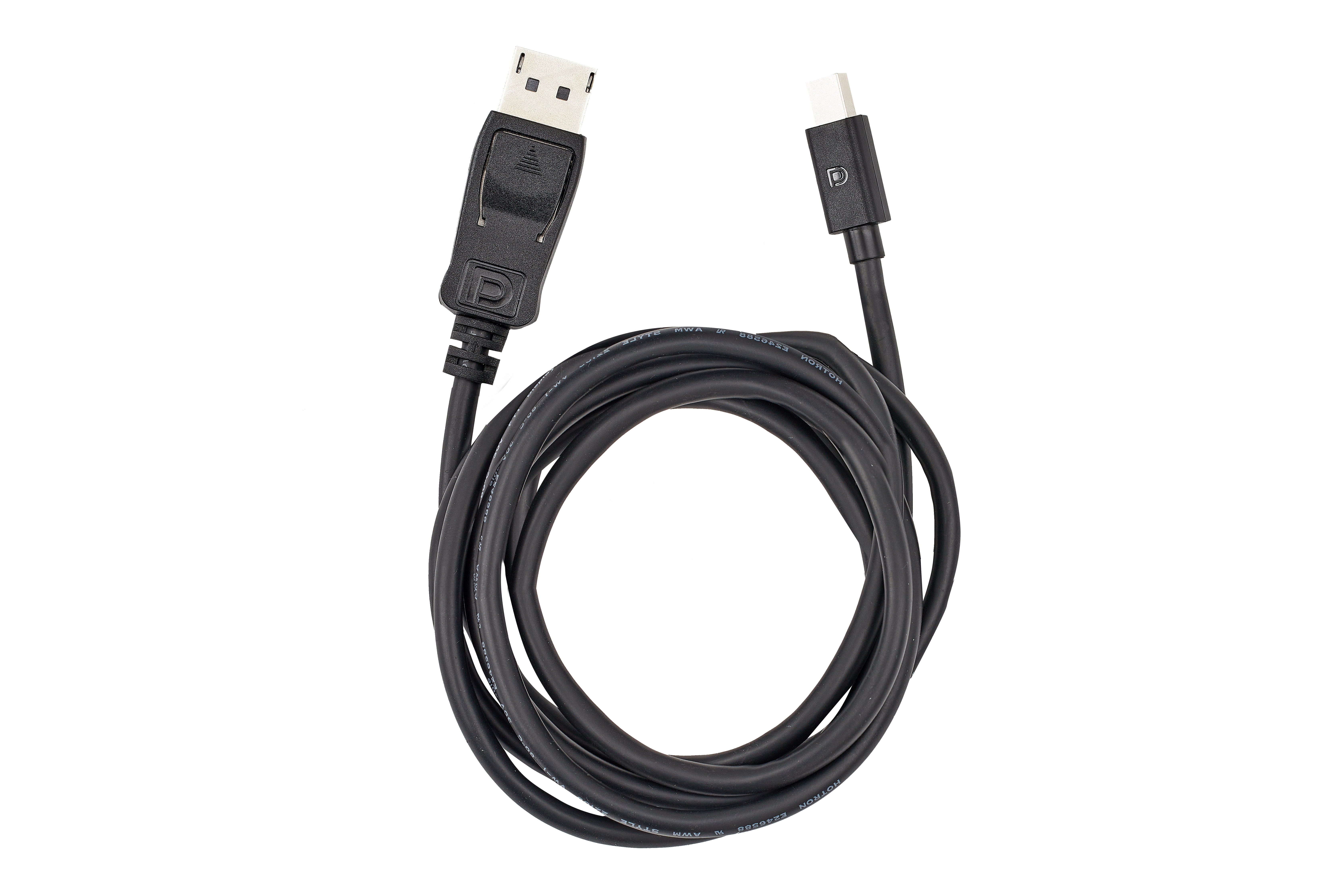 왼쪽은 양쪽에 HDMI 단자가 달려 있는 HDMI 케이블이고, 오른쪽은 Mini Displayport to Displayport 케이블입니다.