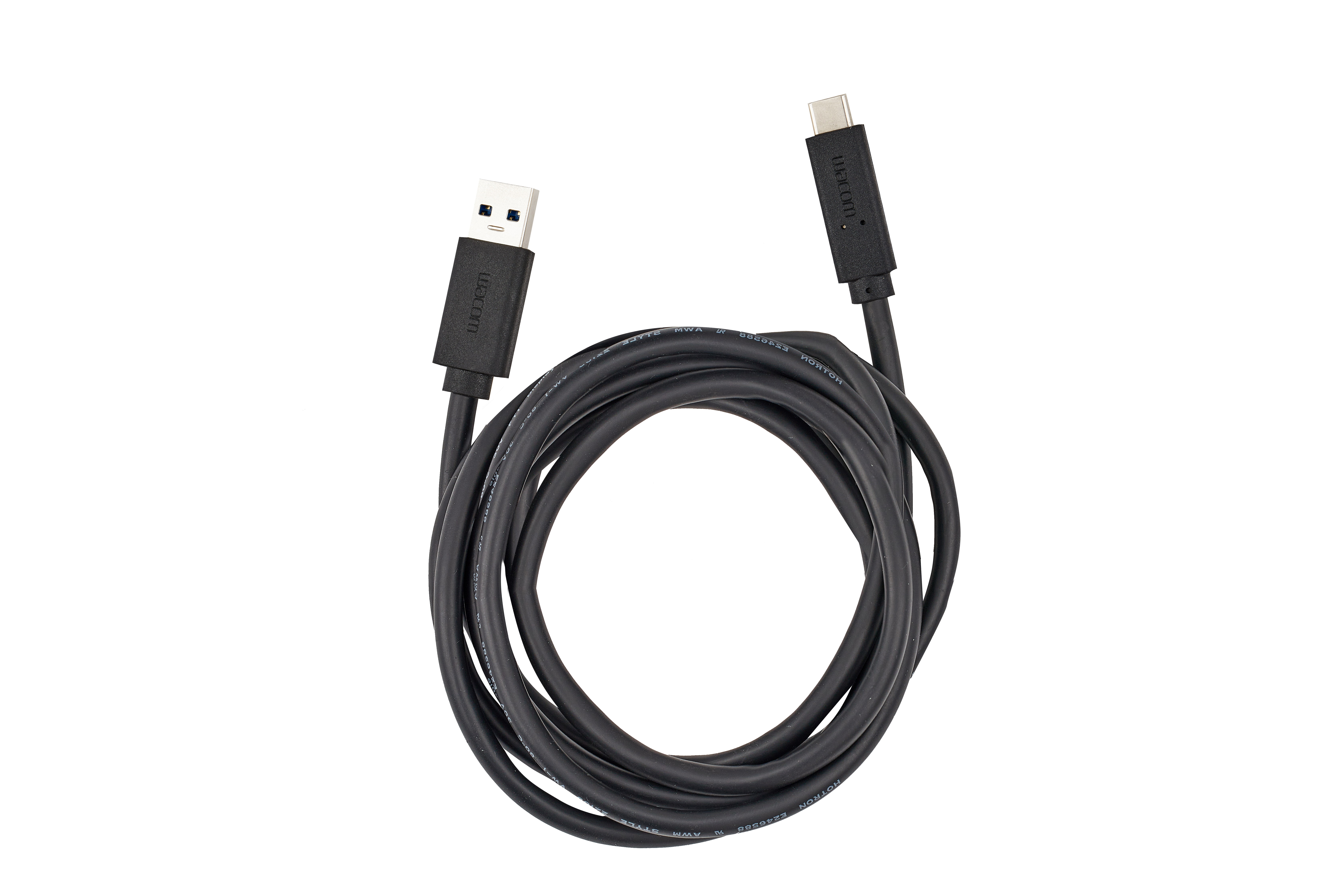 좌측은 USB-C to USB-A 케이블입니다. 한 쪽은 USB-C 단자, 다른 한 쪽에는 USB-A 단자가 달려 있어서 각각 단자를 기기에 연결할 수 있어요. 우측은 USB-C 단자가 양쪽에 달린 USB-C to USB-C 케이블입니다. 두 케이블 모두 펼쳤을 때의 길이가 약 1.8m입니다.