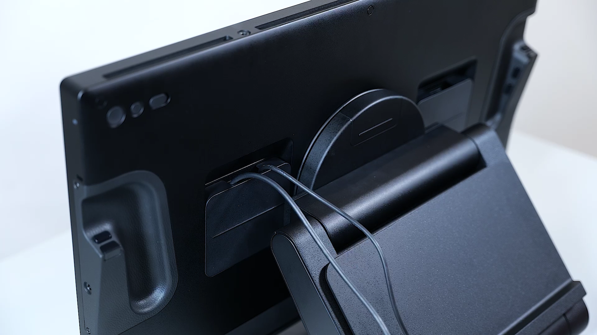그리고 포트 위쪽에 있는 건 케이블타이인데요, 신티크 프로 27을 PC와 연결하는 경우에, 기기 뒤에 있는 케이블 선을 이 케이블 타이를 이용해 정리할 수 있습니다. 긴 케이블이 중구난방 상태가 아니라 위 사진처럼 깔끔하게 정리되기 때문에 아주 유용해요. 이렇게 사소한 곳에서 유저를 생각하는 와콤의 디테일을 발견할 수 있네요.