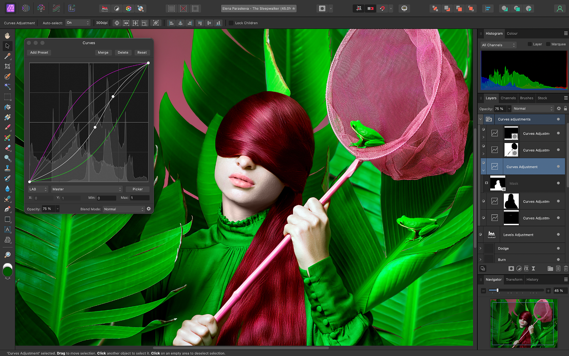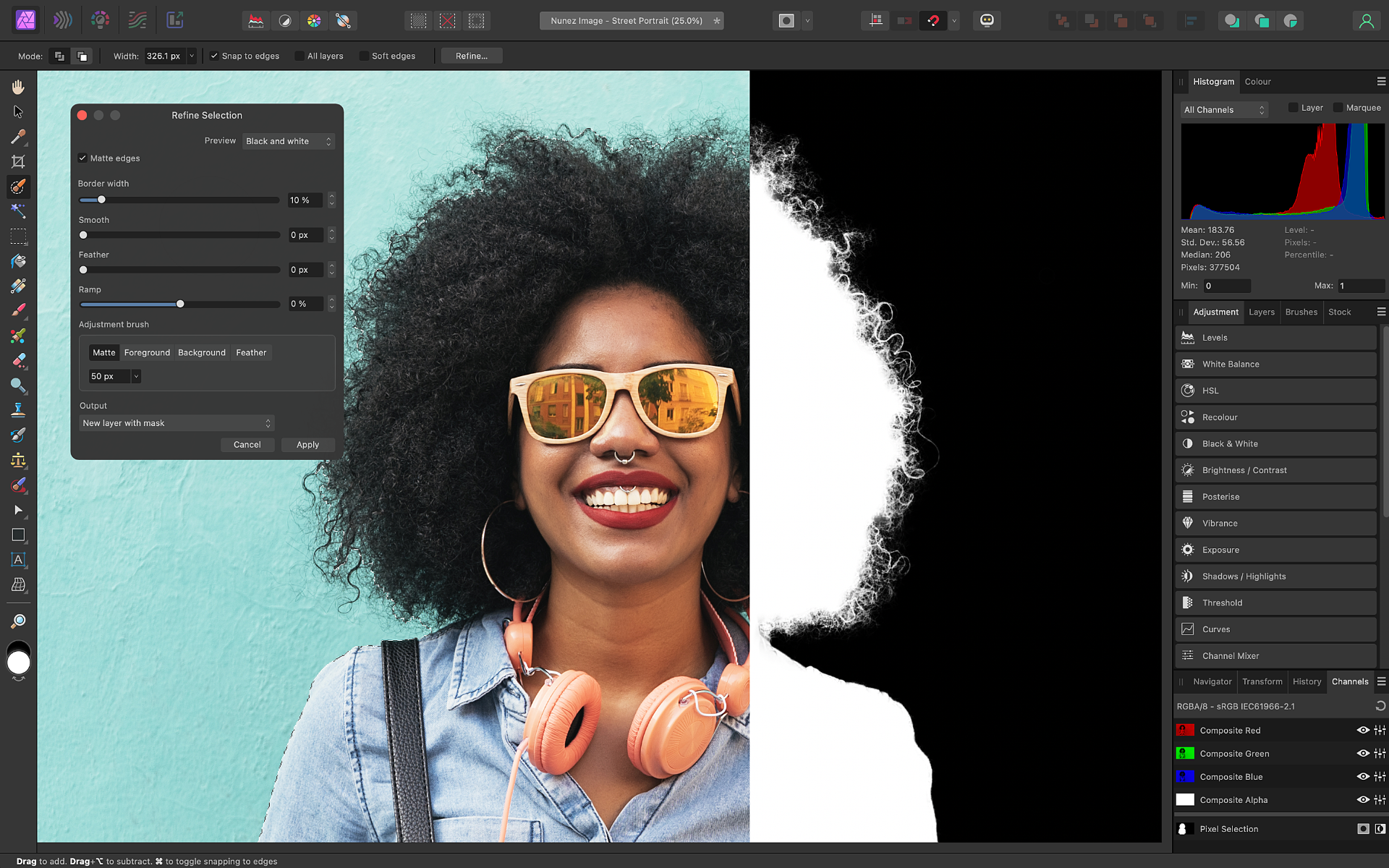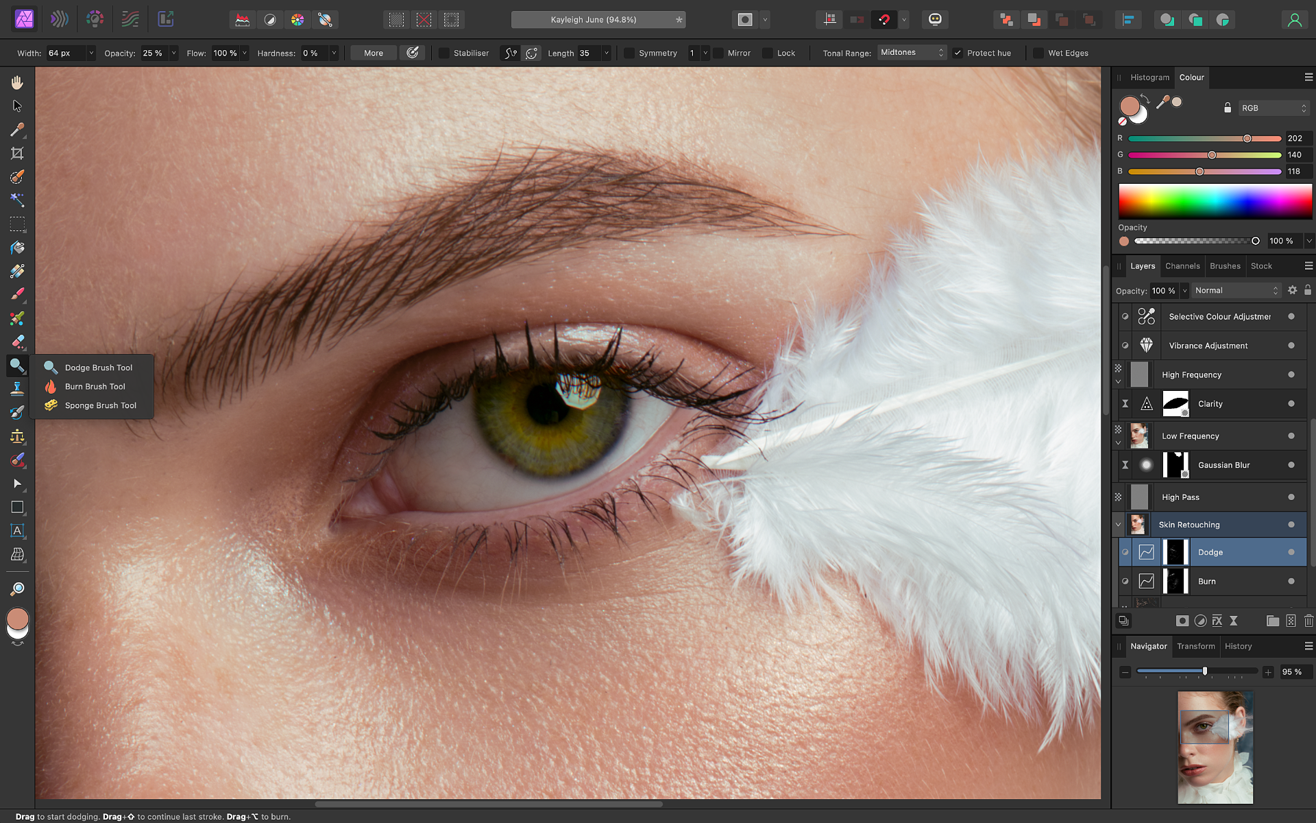 어피니티 포토는 전문가급의 워크플로우를 지원합니다. 실시간 편집이 가능하고, 대용량 파일을 빠르게 불러올 수 있습니다. 최대 주사율로 이동 및 확대/축소가 가능해요. RAW 파일도 당연히 편집 가능합니다.