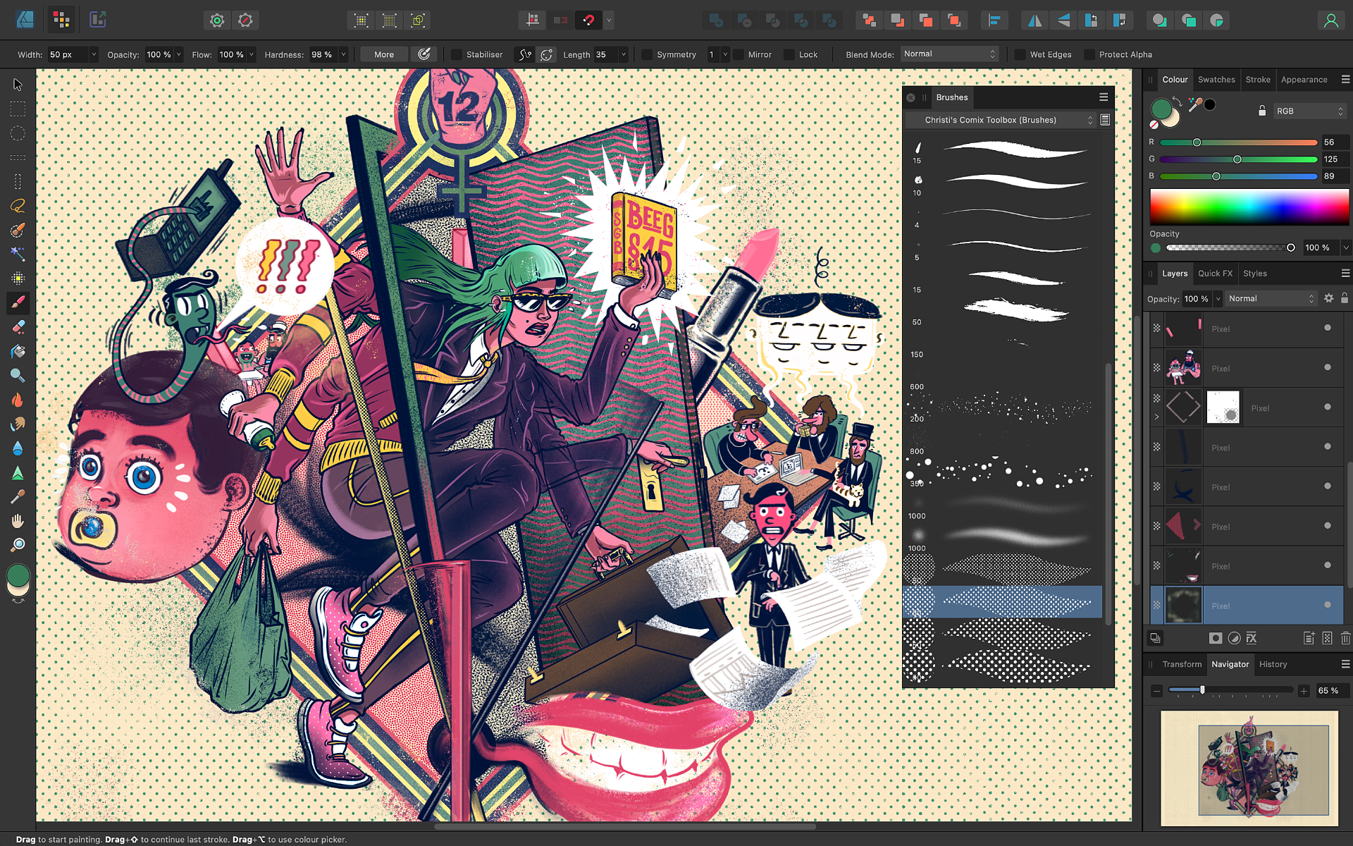 어피니티 디자이너는 그 어떤 복잡한 문서에서도 빠른 속도를 자랑합니다. 실시간으로 작업을 지연 없이 처리하고, 레이어를 그룹핑하거나 색상 태그를 할 수 있어요. 게다가 무려 100만 퍼센트 이상의 확대와 축소가 가능해요.