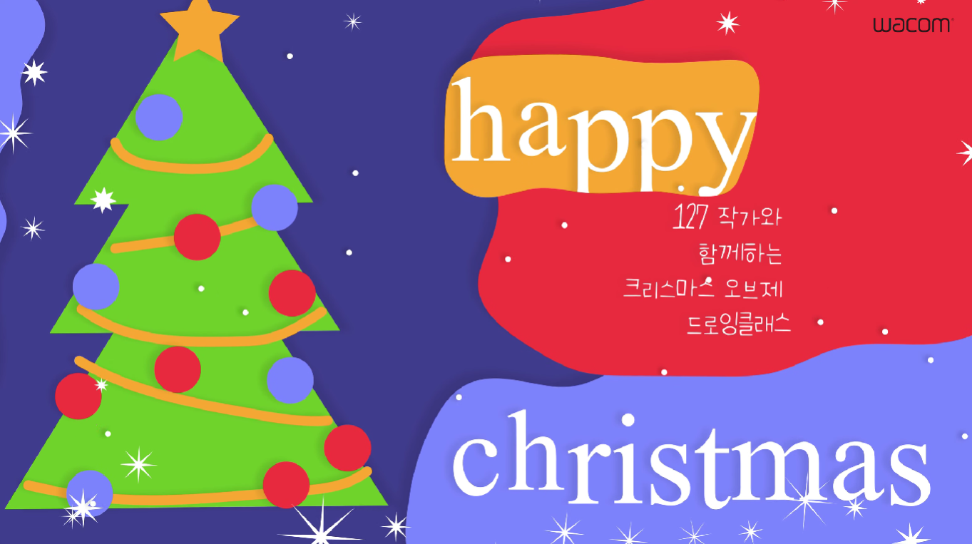 지난주, 와콤 공식 유튜브 채널에는 <크리스마스 오브제 만들기> 온라인 세미나 영상이 업로드되었습니다. 12월 25일 크리스마스를 맞이해 와콤이 준비한 웨비나인데요, 개성 있는 그림체와 다양한 협업으로 많은 사랑을 받고 있는 일러스트레이터 127 작가님이 이번 온라인 세미나를 함께했습니다. 127 작가님은 일러스트레이터 프로그램을 활용해 크리스마스를 기념하는 멋진 드로잉 작품을 만드는 과정과 노하우를 전달했는데요, 크리스마스가 지났지만 여전히 그 분위기를 물씬 느껴지는 웨비나 시간이었습니다. 그럼 어떤 내용이 담겨있는지 요약해서 소개할게요 :)