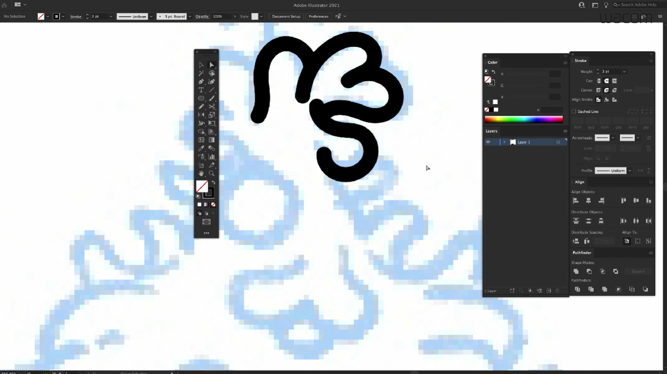 C에서 시작했는데 어느새 A차례가 되었네요! A 스펠링에는 크리스마스 트리를 그려줄 건데요, 뾰족한 침엽수보다는 몽글몽글한 트리 느낌으로 작업해 보겠습니다. 특히 곡선은 와콤 타블렛을 이용하면 맛깔나게 그릴 수 있어요. 127 작가님은 곡선 작업을 할 때 와콤의 장점을 최대치로 느낀다고 합니다. 곡선을 마우스로 그리는 것은 어렵기 때문에, 액정타블렛이 특히 용이하지요.