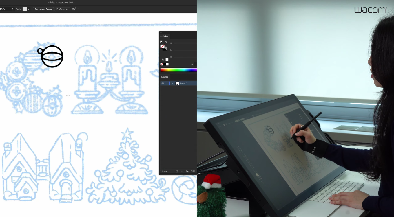 지난주, 와콤 공식 유튜브 채널에는 <크리스마스 오브제 만들기> 온라인 세미나 영상이 업로드되었습니다. 12월 25일 크리스마스를 맞이해 와콤이 준비한 웨비나인데요, 개성 있는 그림체와 다양한 협업으로 많은 사랑을 받고 있는 일러스트레이터 127 작가님이 이번 온라인 세미나를 함께했습니다. 127 작가님은 일러스트레이터 프로그램을 활용해 크리스마스를 기념하는 멋진 드로잉 작품을 만드는 과정과 노하우를 전달했는데요, 크리스마스가 지났지만 여전히 그 분위기를 물씬 느껴지는 웨비나 시간이었습니다. 그럼 어떤 내용이 담겨있는지 요약해서 소개할게요 :)