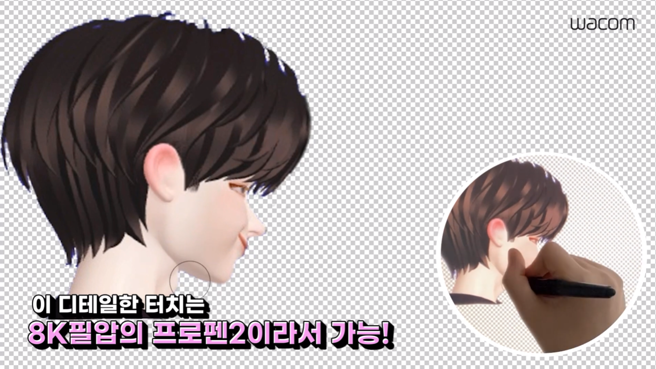 준비물은 액정타블렛 신티크16과 와콤 프로 펜 2. 섬세하고 정밀한 프로 펜 2가 여러분의 멋진 커스텀을 도와줄 거예요. 신티크16에 사용하는 프로 펜 2는 8,192단계의 높은 필압은 물론이고 60도의 기울기까지 지원해 작업물 퀄리티를 높여준답니다. 배터리가 내장되어 있지 않아서 무게가 가볍고 충전이 필요 없는 것은 덤이고요!