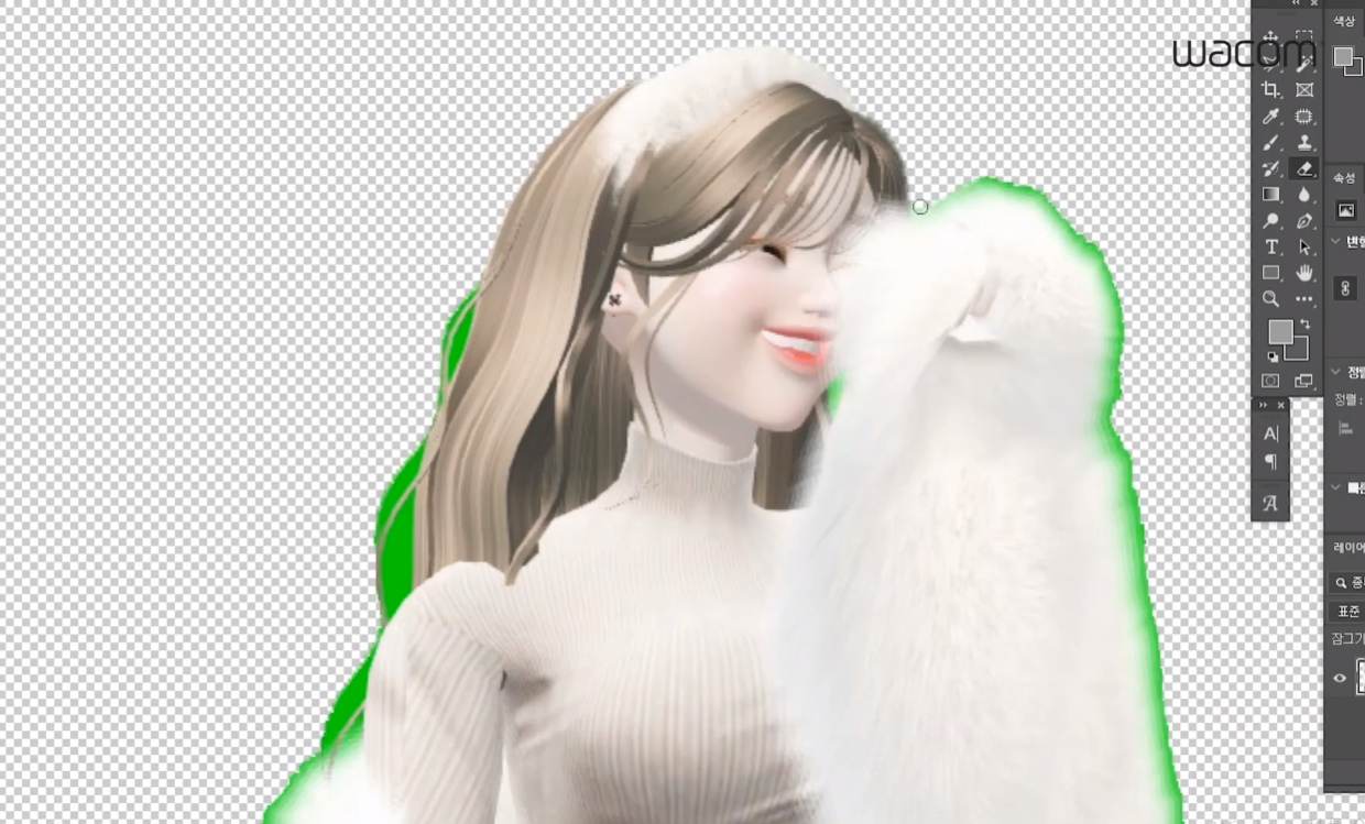 먼저, 포토샵에서 준비해둔 이미지를 열어서 인물 이미지만 남기고 배경은 전부 지워주세요. 마술봉 툴을 이용하면 배경을 쉽게 제거할 수 있습니다.