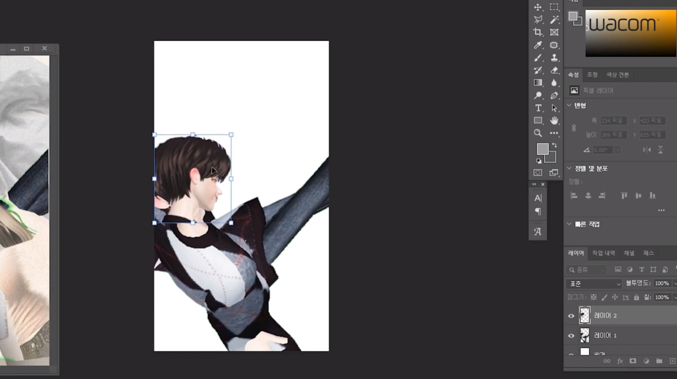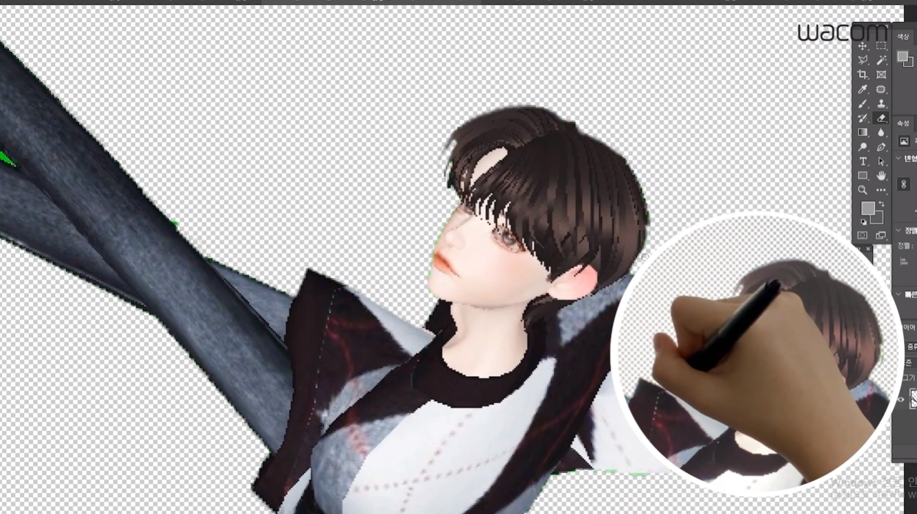 배경을 다 지웠으면, 이미지 사이즈를 조절해서 캔버스에 꽉 차게 만들어줍니다. 이런 작업도 모두 마우스가 아닌 프로 펜 2로 할 수 있다는 사실! 참 쉽죠?
