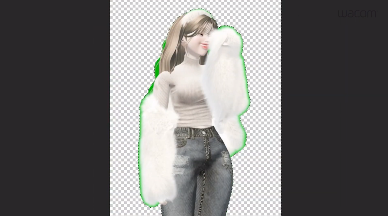 1차로 배경을 제거했지만, 캐릭터와 아주 가까이에 있는 배경은 제대로 지워지지 않고 남아있는 것을 볼 수 있는데요, 남은 배경은 지우개툴로 슥삭슥삭 지워줍니다. 세세한 부분은 지우개 크기를 조절하면서 지워주세요. 프로 펜 2를 사용하면 필요한 부분만 섬세하고 깔끔하게 지울 수 있답니다.