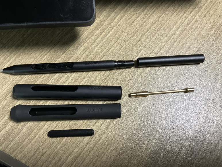 신티크 프로 27와 함께 출시된 새로운 와콤 프로 펜 3. 이전 모델에 비해 내구성이 개선되었고, 펜촉도 카본 소재로 바뀌면서 튼튼해졌습니다. 액정필름을 붙이지 않으면 닳지 않는 수준으로, 2개월 내내 사용했는데도 마모된 곳이 전혀 없다고 하네요. 커스터마이징도 가능하기 때문에, 슬림펜과 3D펜이 따로 나뉘었던 프로 펜 2와 달리, 프로 펜 3 하나로 모든 것을 사용할 수 있어요. 무게 추를 넣어서 무게 조절도 가능합니다.
