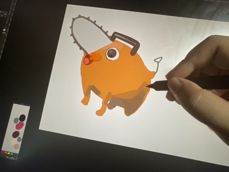 panzer님은 프로 펜 3를 이용해 만화 체인소맨에 나오는 귀여운 캐릭터 포치타를 그려보았는데요, 120Hz의 높은 주사율을 자랑하는 액정 위에서 펜을 사용하니 이전에 비해 확실히 펜 움직임이 부드럽게 느껴졌다고 해요. 무엇보다 패널과 표면의 두께 차이 때문에 발생하곤 했던, 펜 끝과 액정 사이의 갭이 엄청나게 줄어든 것이 가장 만족스러웠다고 합니다.