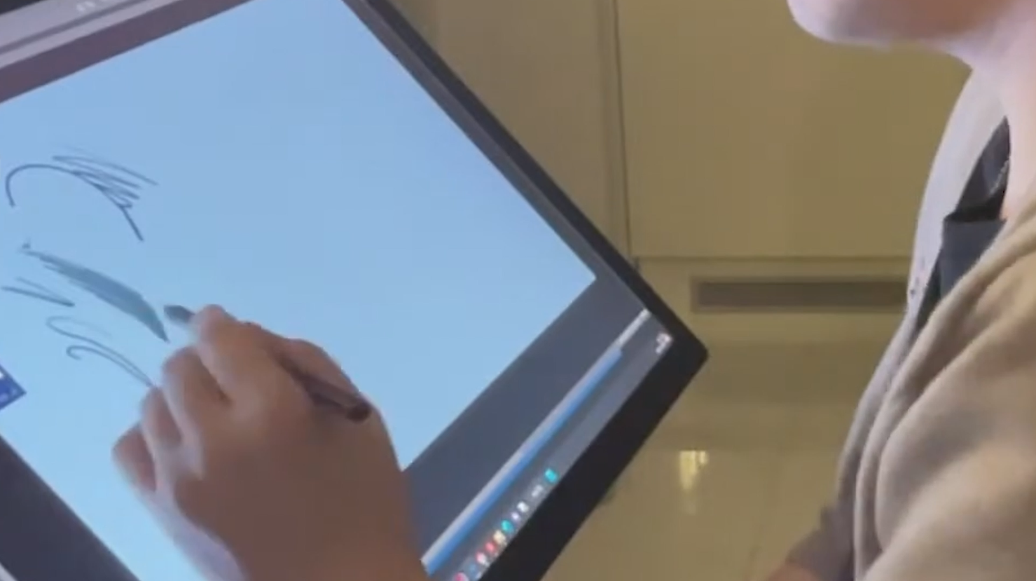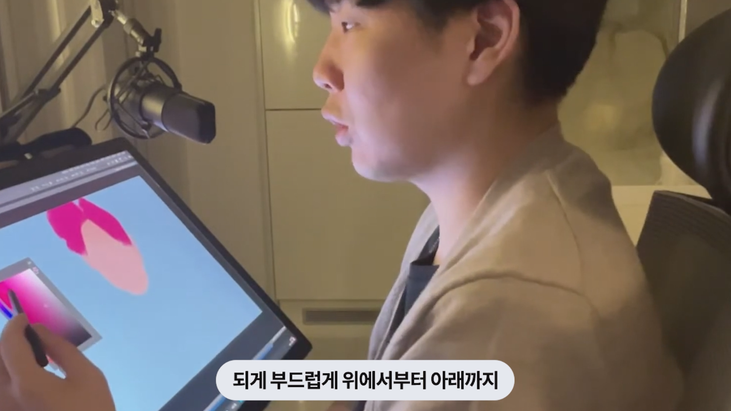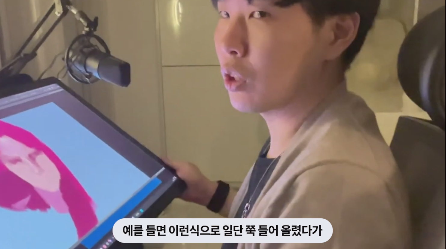 이제 드로잉을 하면서 중간중간 제품을 소개할게요. 일단 신티크 프로 27은 화면이 시원하게 커진 27인치 디스플레이를 탑재했습니다. 평준님이 직전에 사용하던 모델은 신티크 프로 16인데요, 이번 신제품은 정말 다양한 영역에서 개선된 제품이라 작업자 입장에서 만족도가 뛰어나다고 해요.