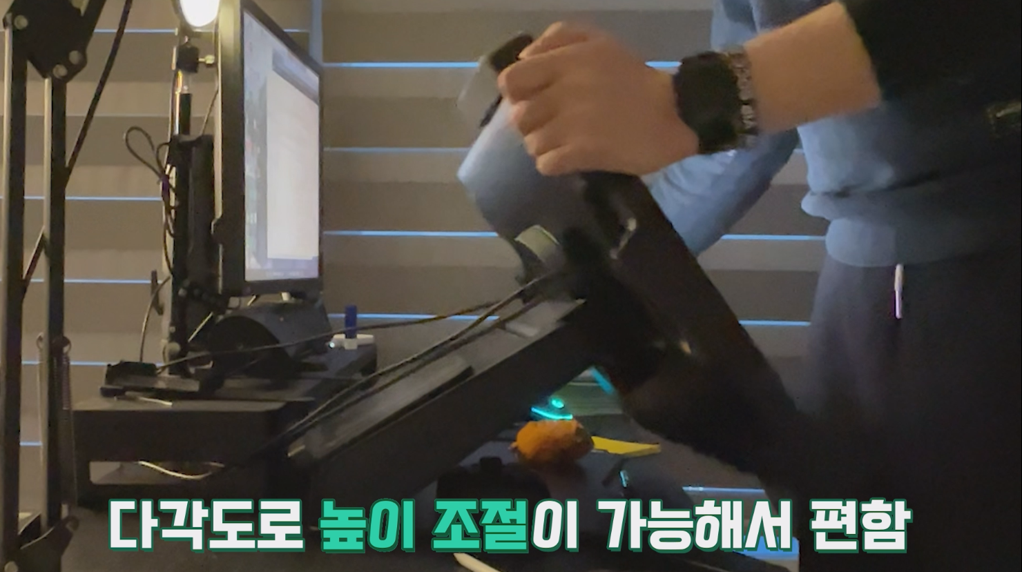 평준님은 그림 그릴 때 자연스럽게 자세를 바꿔가면서 편하게 사용하고 있어요. 사진 속 스탠드 각도는 앉아서 그림을 그릴 때 편한 정도입니다.
