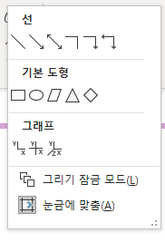 그리기 메뉴 중 도형 탭을 클릭하면 선, 기본 도형, 그래프를 그릴 수 있는 옵션이 등장합니다. 이 모든 선, 도형, 그래프는 펜을 이용해서 그냥 바로 그려도 괜찮지만, 이렇게 도형 기능을 이용하면 선이 더욱 깔끔하면서 모양도 예쁜 상태를 더 빠르게 만들 수 있다는 장점이 있어요.