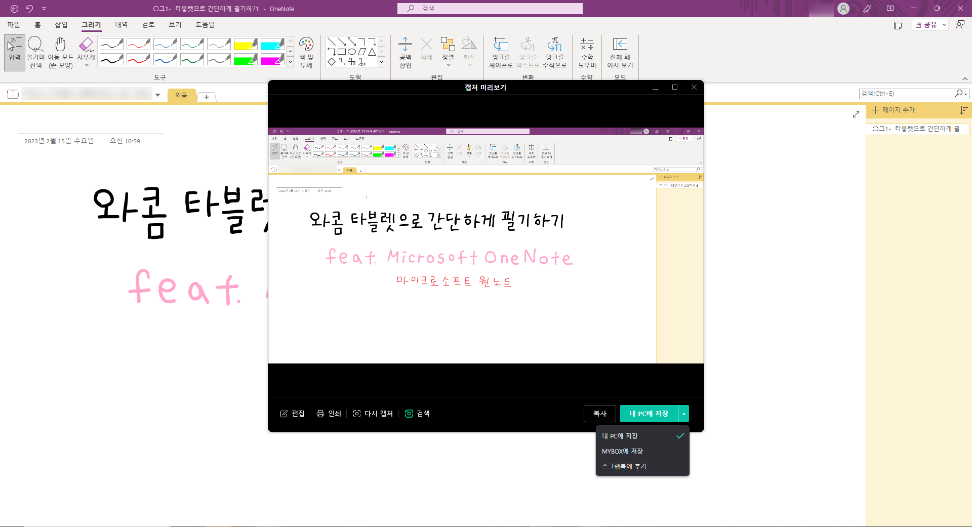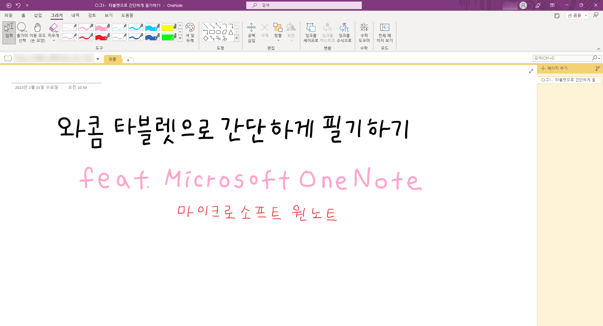 와콤 타블렛으로 간단하게 필기하기 - Microsoft OneNote (1)