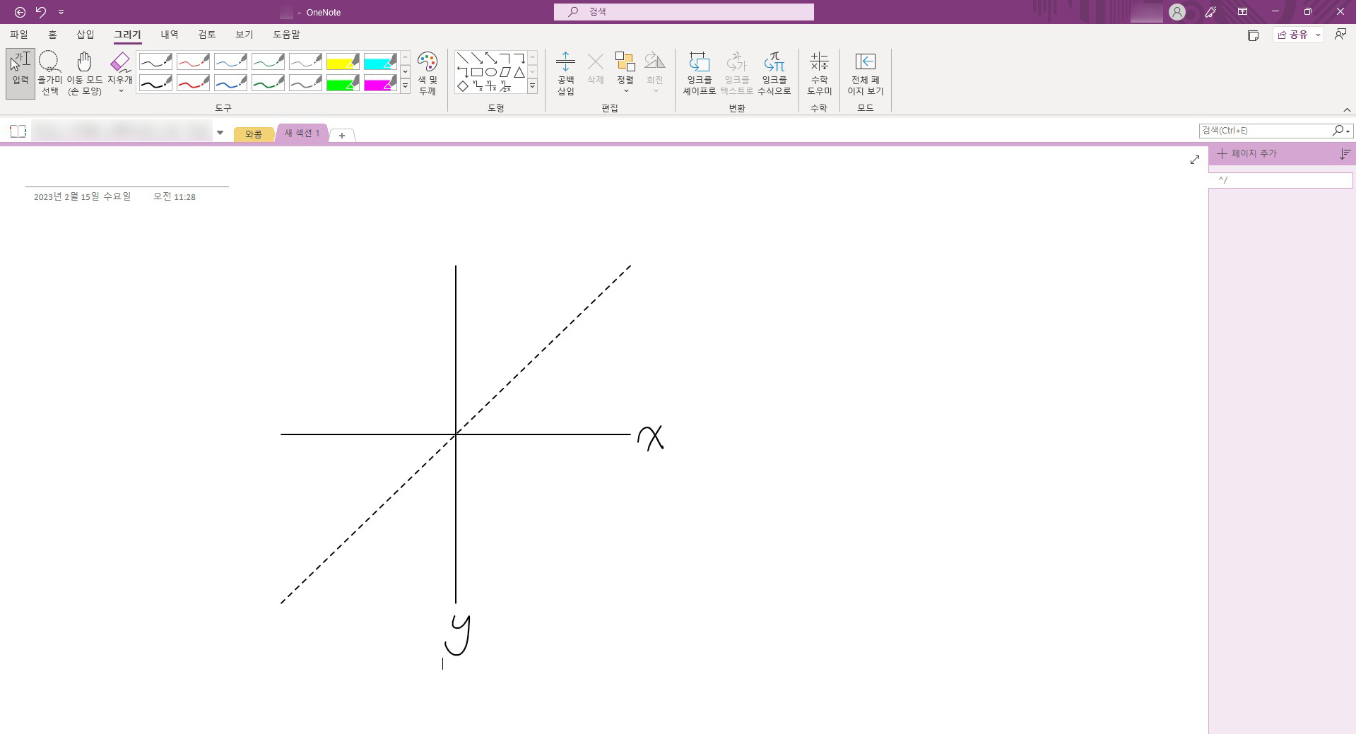 수학을 가르치는 선생님들은 다른 과목보다도 복잡한 필기를 할 일이 많습니다. 도형은 물론이고, 길고 복잡한 수식이나 그래프를 그려야 할 때는 시간이 오래 걸리기 때문에 비효율적인데요, 원노트에서는 수학과 관련된 많은 기능을 제공하고 있어요.
