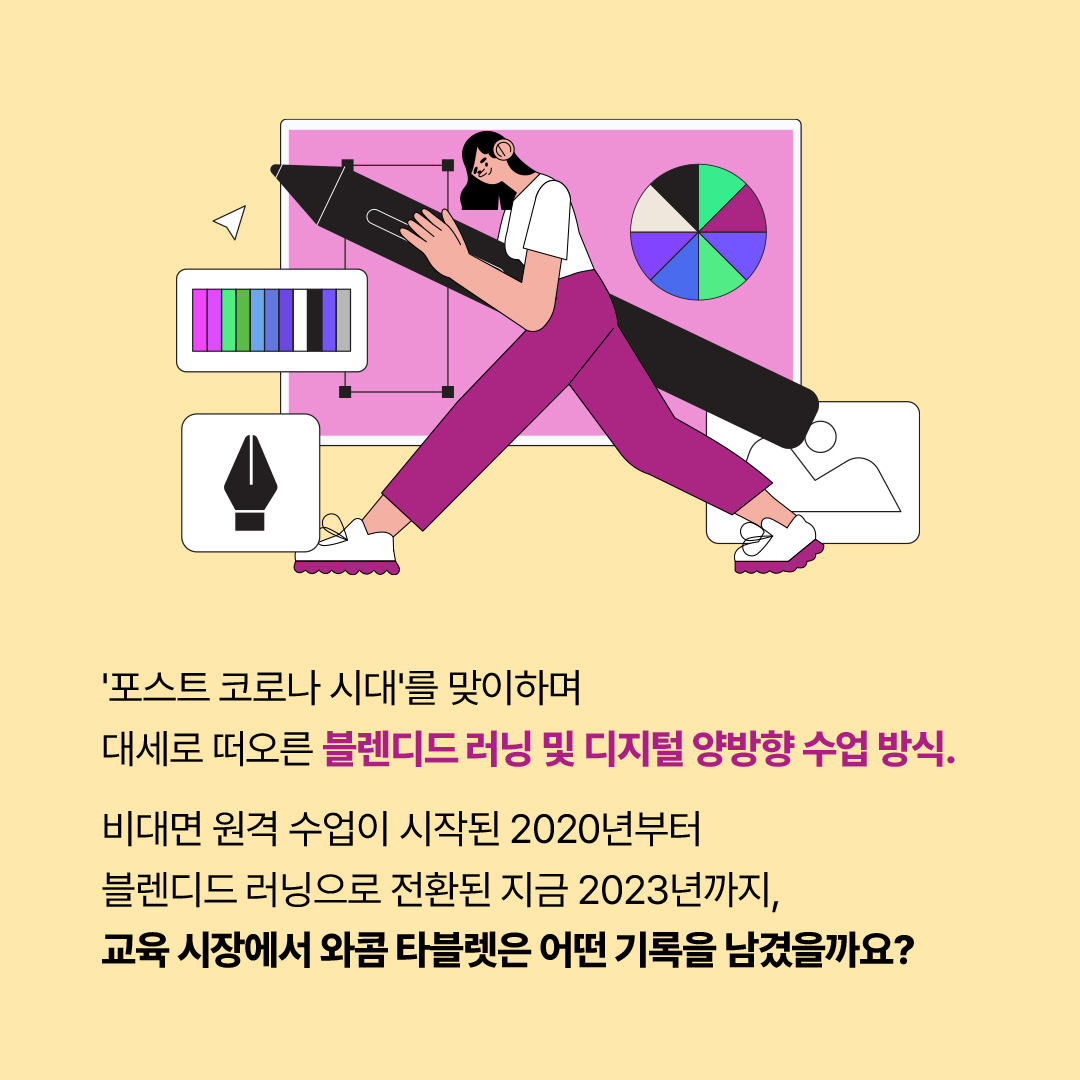 비대면 원격 수업이 활성화된 2020년부터 기존의 일방향 교육방식과 새로운 양방향 러닝방식을 혼합하게된 전환된 지금까지, 하이브리드 교육 시대로 변화하는 과정에서 와콤 타블렛은 어떤 기록을 남겼을까요?