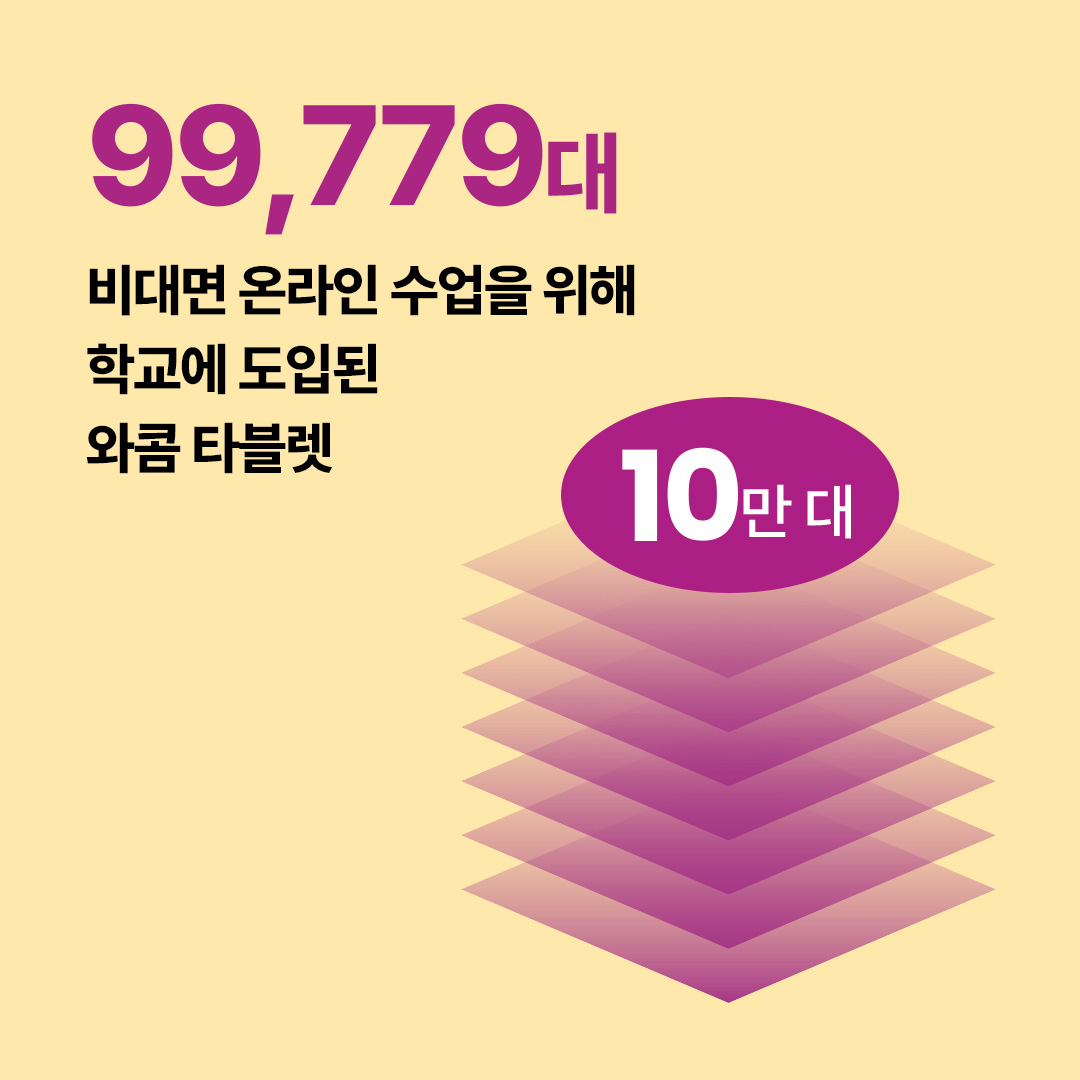 그리고 팬데믹 시대가 도래하면서 지난 3년여간 비대면 온라인 수업을 위해 학교에 도입된 와콤 타블렛은 총 99,779대로 무려 10만 대에 육박하는 어마어마한 수량을 자랑합니다. 점점 교육 환경에서 타블렛의 존재감이 커져가는 것을 알 수 있죠.