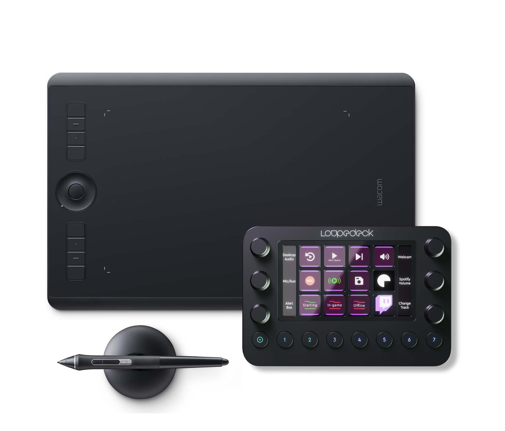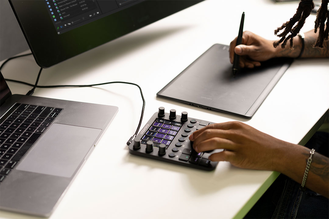 와콤 타블렛과 함께 사용할 수 있는 제품은 영상 편집에 최적화된 루프덱 CT, 그리고 라이브 스트리밍을 타깃으로 한 루프덱 LIVE에요. 루프덱의 고유한 멀티 버튼 및 햅틱 다이얼 설정을 통해 정확하고 정밀한 조정이 가능해요. 외워야 할 단축키도 많고, 사용해야 하는 프로그램도 많을 때 유용하게 쓸 수 있는 디바이스랍니다. 실제로 수많은 크리에이터가 루프덱을 활용하고 있다고 하네요.