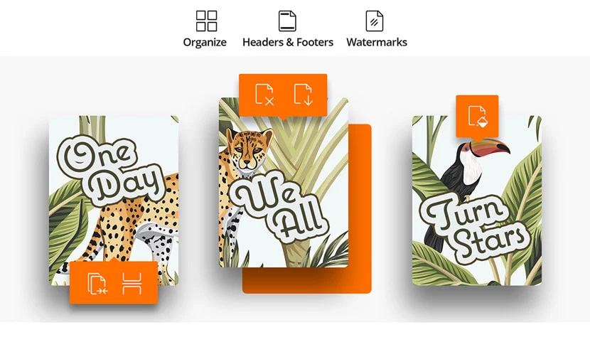 또, PDF에 무려 이미지와 비디오를 삽입할 수도 있고, 워터마크, 스탬프, 머리글과 바닥글, 배경 추가 및 수정이 가능합니다. 배경, 워터마크, 머리글과 바닥글의 경우 여러 PDF에 한 번에 추가할 수도 있습니다.