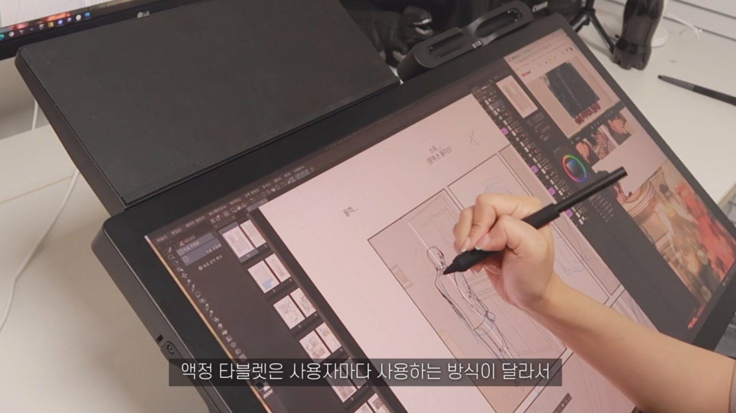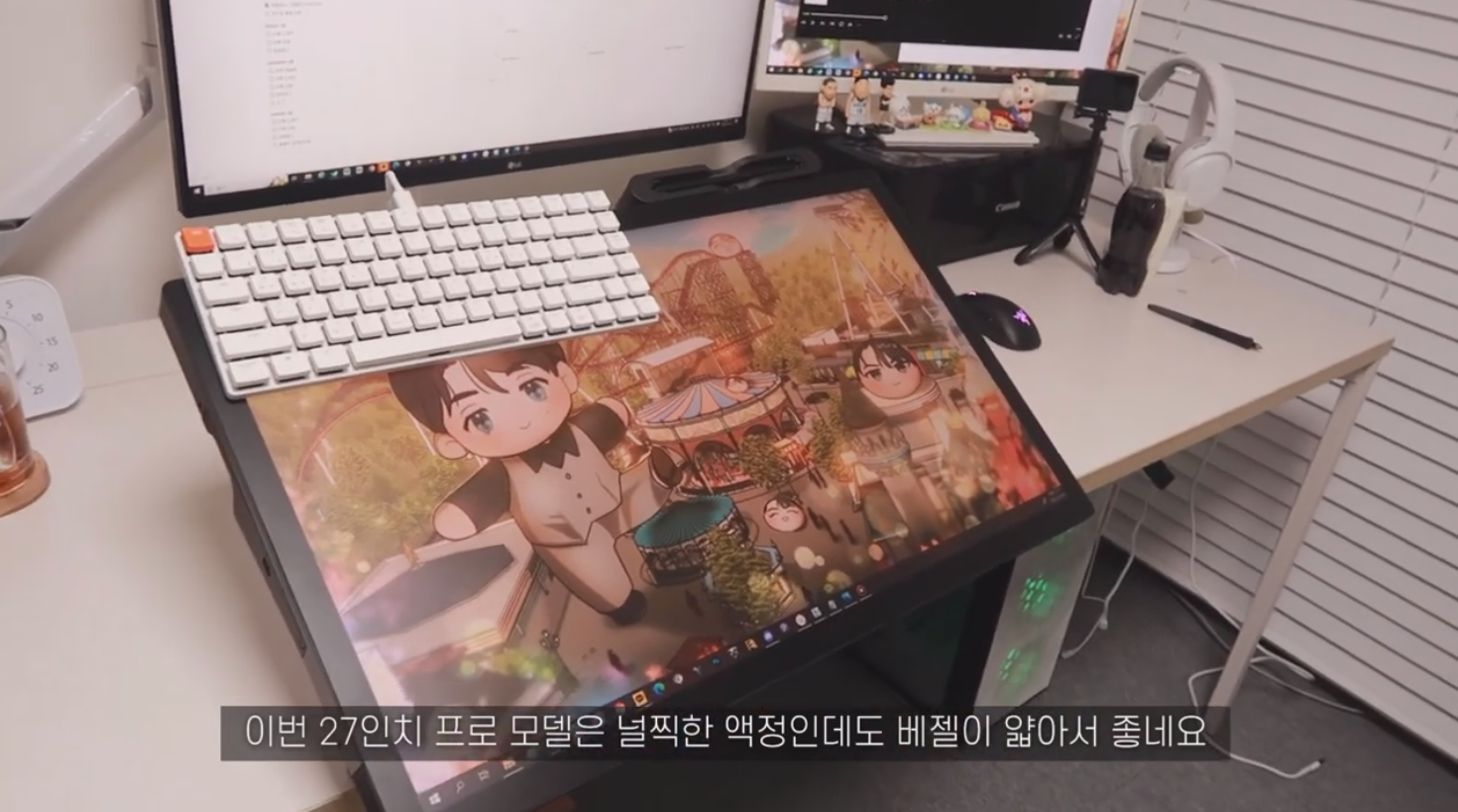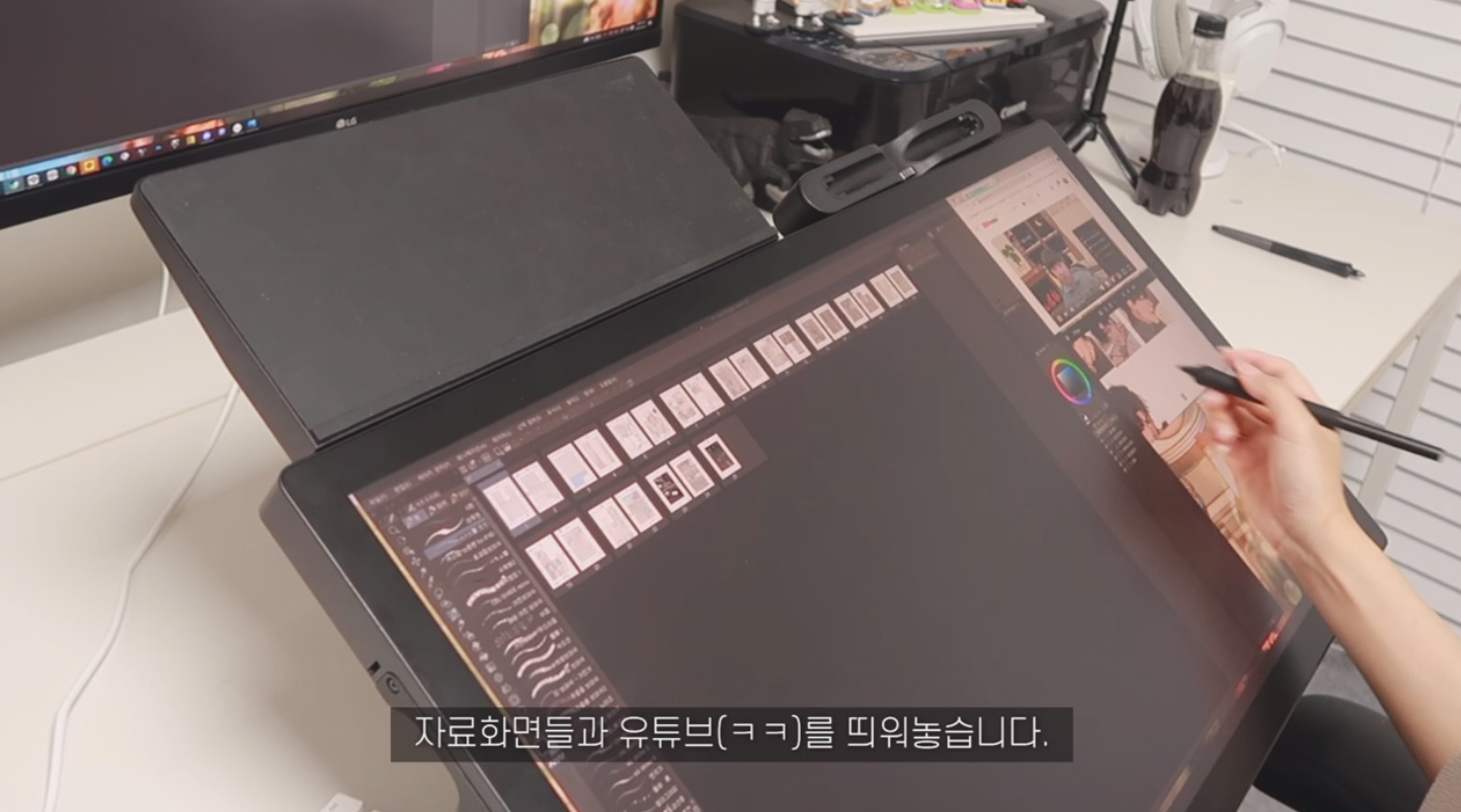 킹뿌꾸님이 신티크 프로 27의 넓은 액정을 활용하는 방법은 바로 여러 창을 띄워놓는 것입니다. 그림 그릴 때 필요한 자료화면과, 작업 도중에 보면서 즐길 수 있는 유튜브 영상을 함께 띄워놓고 볼 수 있어요.