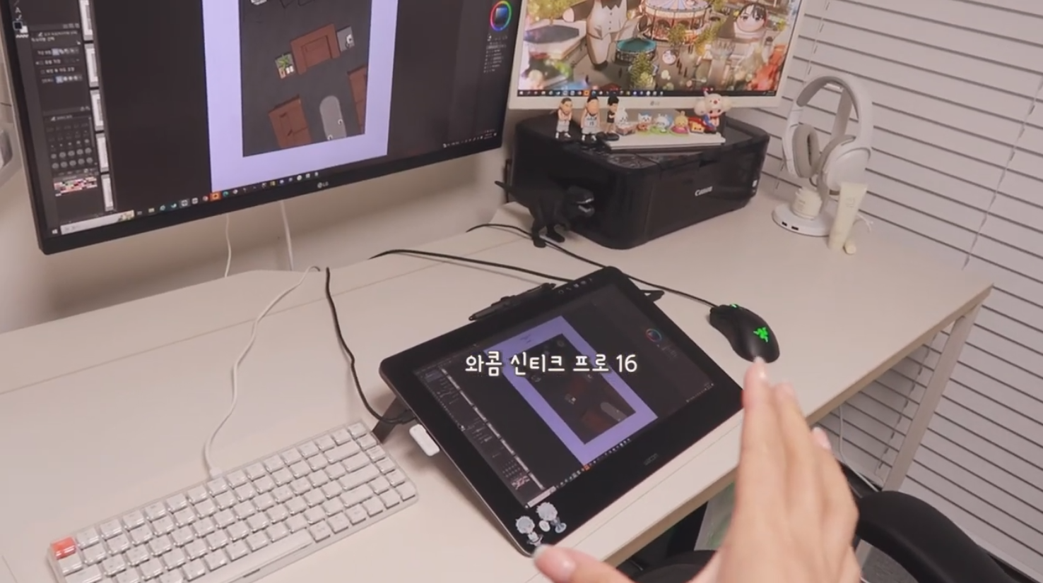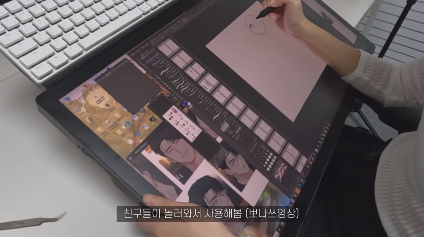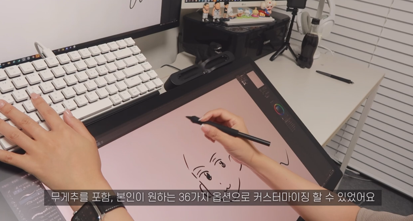 킹뿌꾸님이 신티크 프로 27의 넓은 액정을 활용하는 방법은 바로 여러 창을 띄워놓는 것입니다. 그림 그릴 때 필요한 자료화면과, 작업 도중에 보면서 즐길 수 있는 유튜브 영상을 함께 띄워놓고 볼 수 있어요.