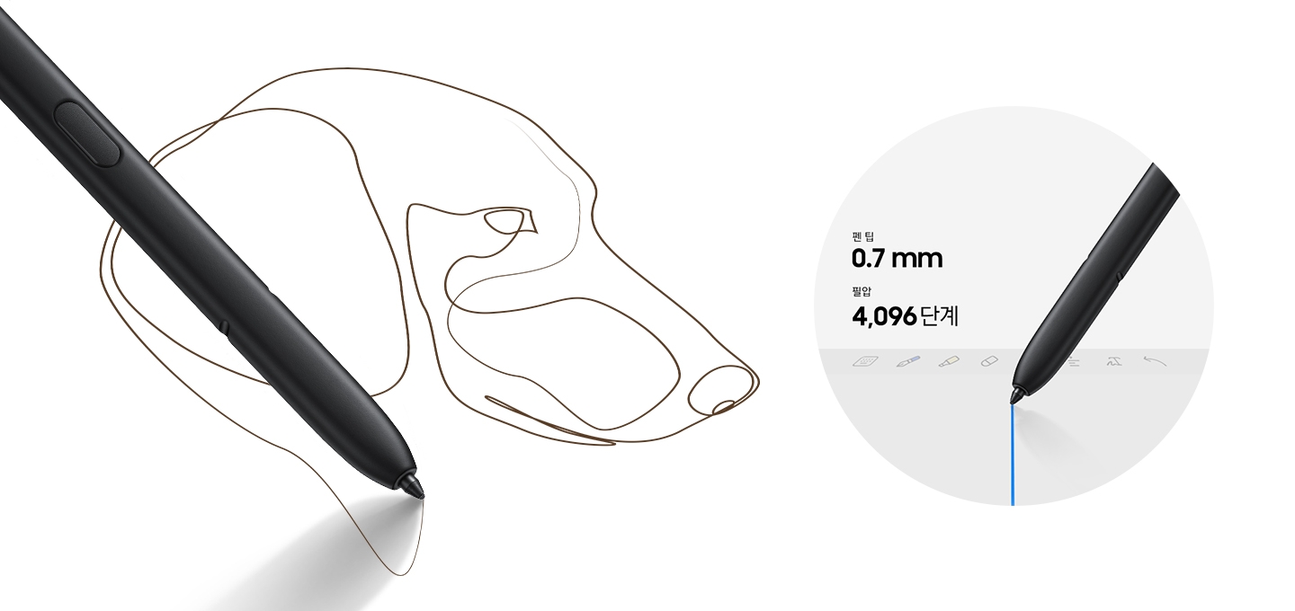 필압 역시 2011년 256단계에서 2012년 1,024단계, 2014년에는 2,048단계로 세분화되었고, 2016년 갤럭시 노트7부터는 4,096단계의 필압을 제공하고 있습니다.