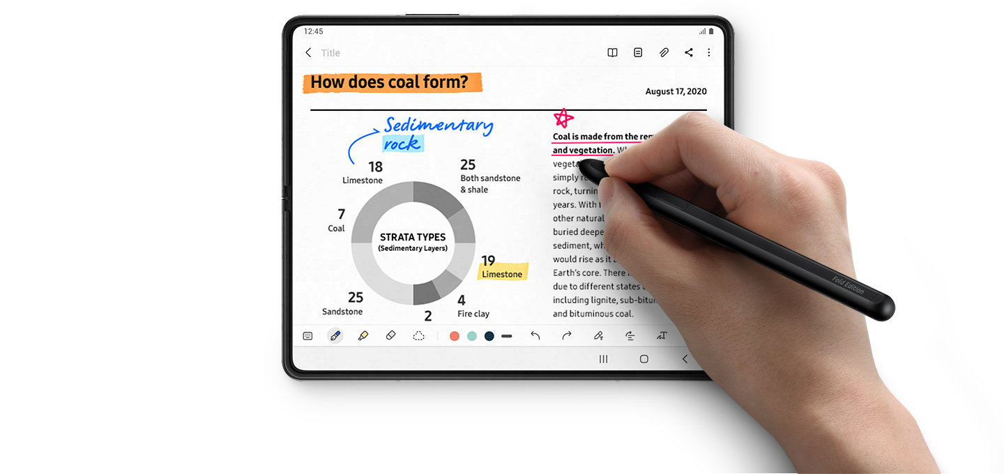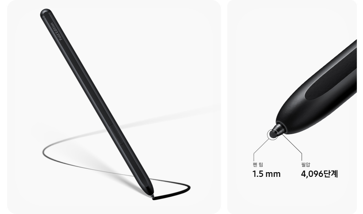 또한 S펜은 디스플레이가 접히는 폴더블 폰에서도 사용 가능합니다. 갤럭시 Z 폴드4, 갤럭시 Z 폴드3에 호환되는 S펜 폴드 에디션을 사용하면 와콤 기술력이 들어간 S펜으로 드로잉, 필기 등을 경험할 수 있습니다. S펜 폴드 에디션은 4,096단계 필압과 1.5mm의 섬세한 펜팁을 자랑하며, 종이 위에 펜을 쓰는 것과 같은 자연스러운 필기감을 선사합니다.