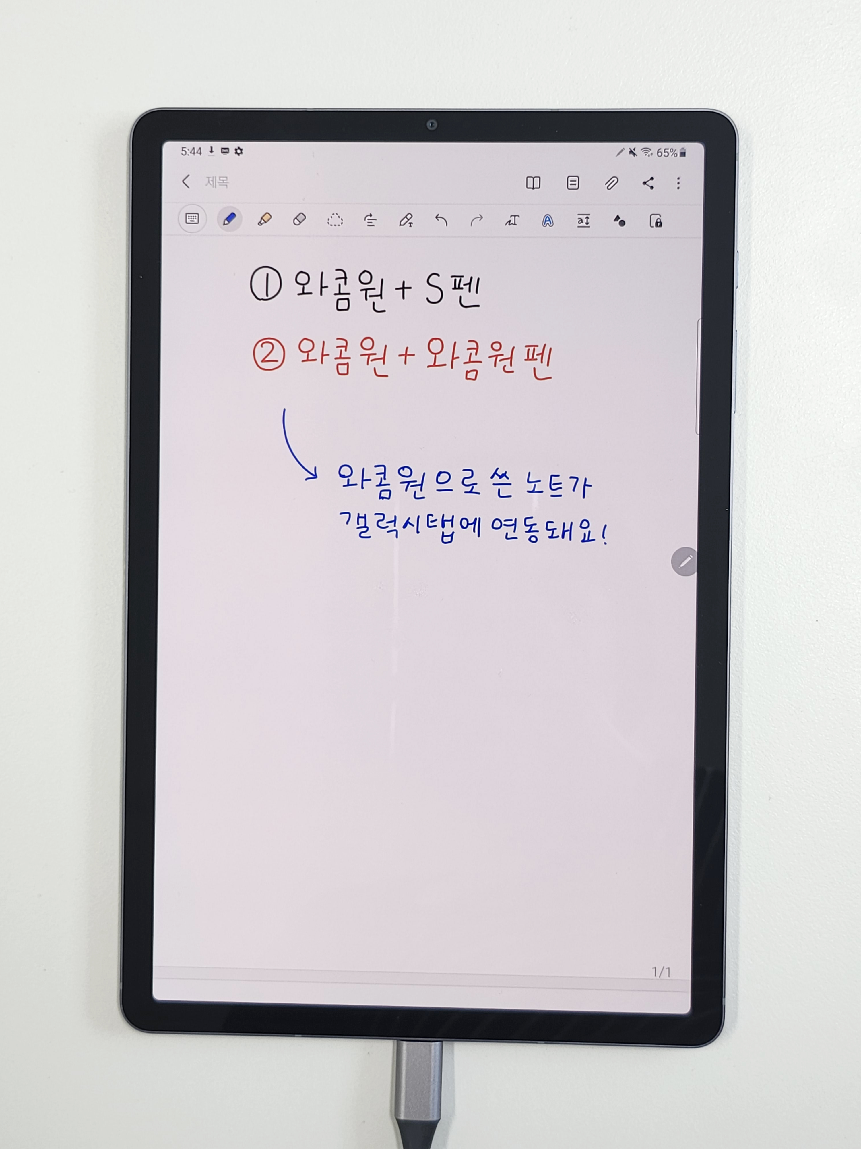 와콤 원에서 삼성 노트로 작성한 내용은, 갤럭시탭에서 추가로 작업을 이어나갈 수 있습니다.