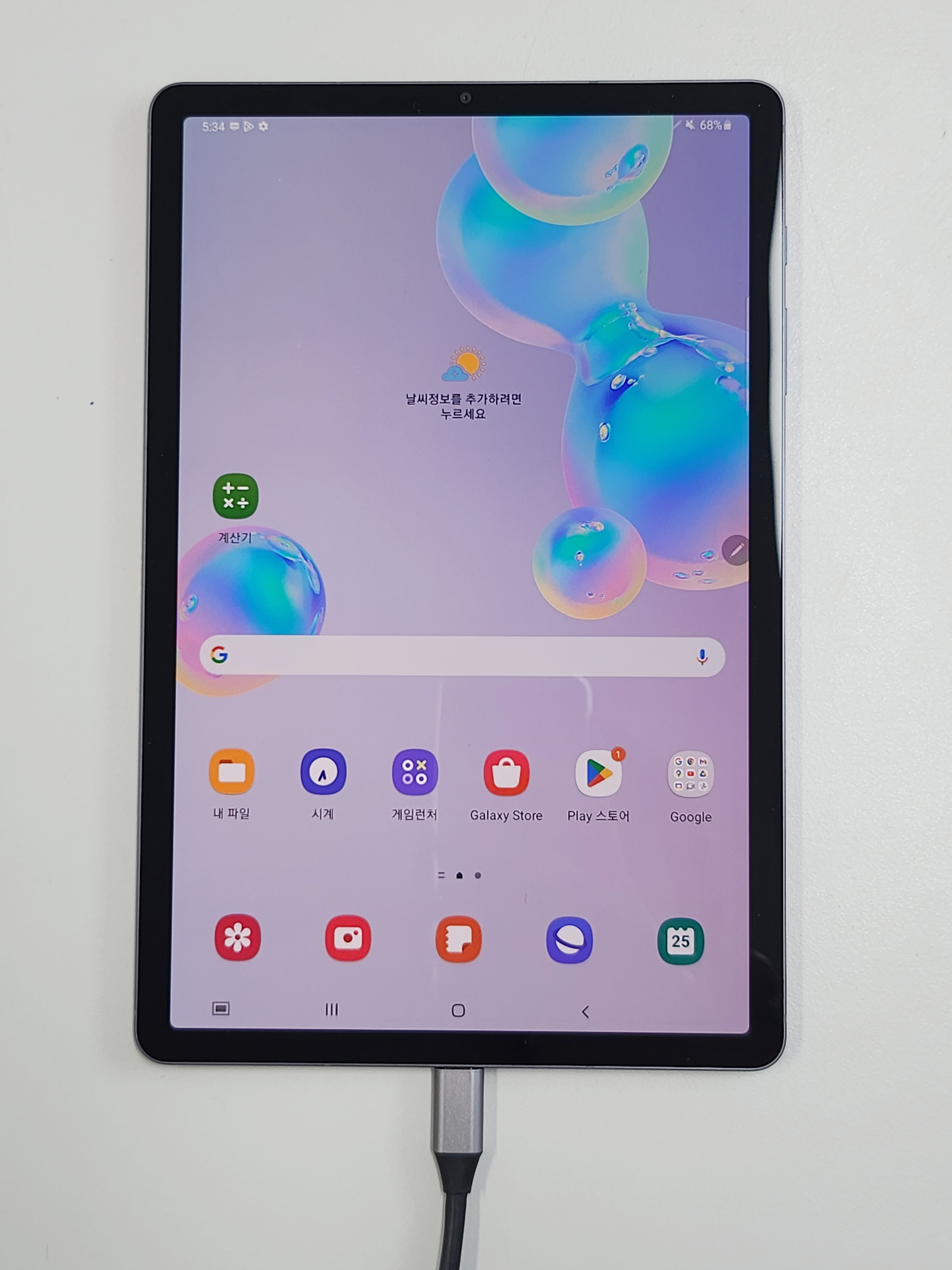다음은 펜타블렛 와콤 인튜어스와 갤럭시탭의 연결 방법입니다. 인튜어스는 와콤 원에 비해 간소화된 연결 방법을 자랑하는데요, 허브에 USB-A 케이블을 연결하고, 인튜어스에는 전원 케이블을 연결해 주세요. 그리고 갤럭시탭에 USB-C 케이블을 꽂으면 간단하게 연결이 끝납니다.