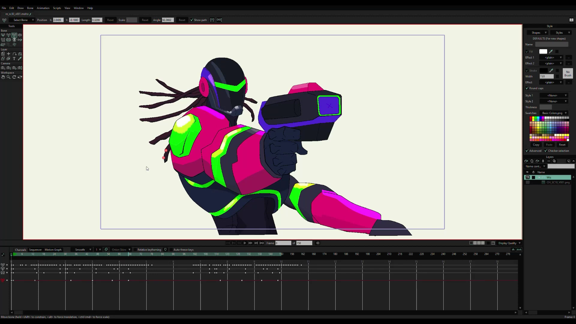 모호는 강력한 2D 리깅 시스템을 바탕으로 사람, 동물 등 애니메이션으로 만들고 싶은 모든 생물과 개체의 골격을 쉽고 빠르게 만들어줍니다. 특히 스마트 본(Smart Bones)이라는 리깅 기능은 모호의 대표적인 특징인데요, 원하는 방식으로 캐릭터가 정확하게 동작하도록 만들어주며 설정하기도 매우 쉽습니다. 모호의 고유한 벡터 시스템은 애니메이션과 리깅에 최적화되어, 움직이는 동안 모양을 항상 일관적으로 유지해줍니다.