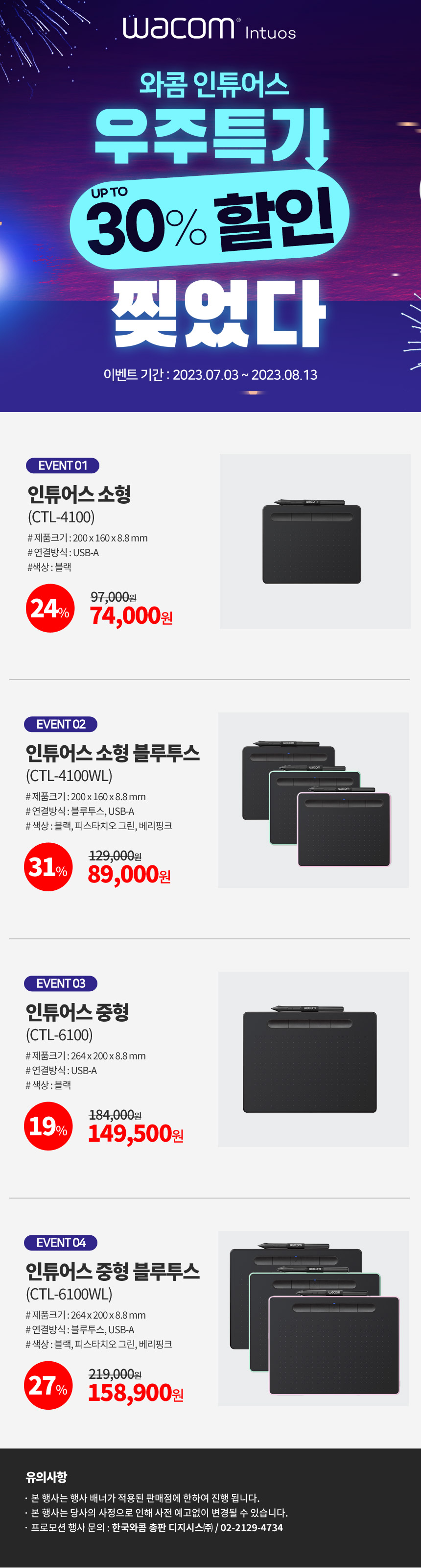 프로모션 관련 문의는 한국와콤 총판 디지시스(02-2129-4734)로 연락 부탁 드립니다.