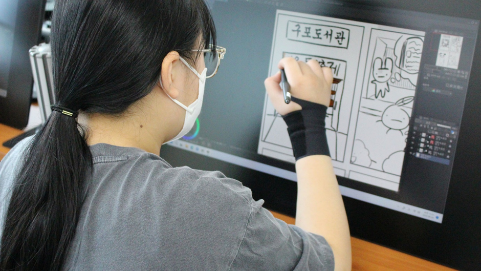 도서관 활성화를 목표로 다채로운 활동을 진행해온 구포도서관은 올해 큰 변화를 거쳤다. 1층 정보문화누리터 내에 웹툰창작체험실을 새롭게 구축한 것. 웹툰창작체험실의 신설은 학생들을 위한 ‘창작 체험의 장’을 조성하겠다는 목표에서 시작됐으며, 이는 학생들이 창작 활동을 즐기면서 동기 부여와 진로 탐색의 기회를 얻었으면 좋겠다는 김세훈 도서관장의 의견이 크게 착용했다.