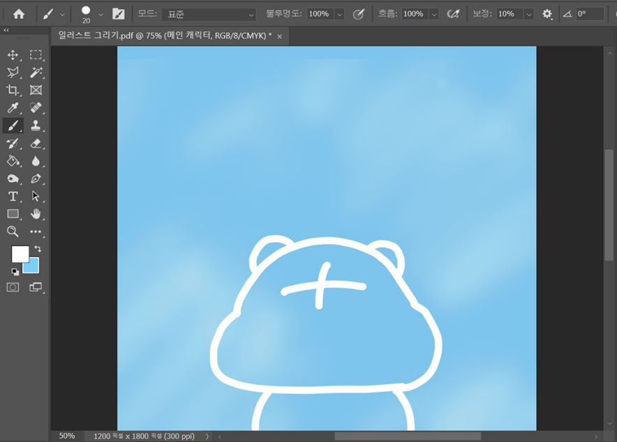 와콤 펜의 필압 덕분에 몽글몽글한 구름이 완성되었습니다. 일반 마우스를 사용하면 색이 선명히 인식되어 구름의 몽글몽글함을 살리기 어렵지만, 와콤 펜을 사용한다면 필압 기능이 있어 손의 강약 조절로 편리하게 색의 선명도를 조절할 수 있습니다. 이것이 바로 와콤 펜만의 장점이지요.