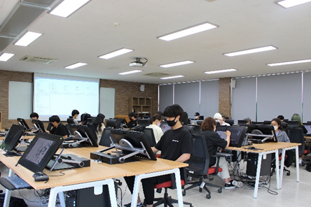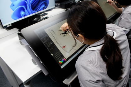2022년 대전 지역 전문대 중 최초로 웹툰 학과를 신설한 대덕대학교는 다양한 스토리텔링 구성력과 실기 기술을 갖춘 웹툰 제작 전문가를 양성하는 과입니다. 웹툰제작기초, 웹스토리텔링, 웹툰 작화 등 현업에 필요한 필수 역량을 향상시키는 커리큘럼은 물론 학생들의 실무 능력 향상에 전폭적인 지원을 하고 있는데요. 웹툰창작실습실에 현업 웹툰 작가들이 가장 많이 사용하고 있는 와콤 신티크 프로 24 풀 세트 36대를 구축하고, 실제 수업에서 사용하며 학생들이 전문 장비에 익숙해질 수 있는 환경을 조성했습니다. 와콤 신티크프로24는 실제 웹툰 및 디자인 등 창작 업계 전문가들이 활용하는 최고 사양의 타블렛으로, 정교하고 세밀한 작업을 할 수 있답니다.