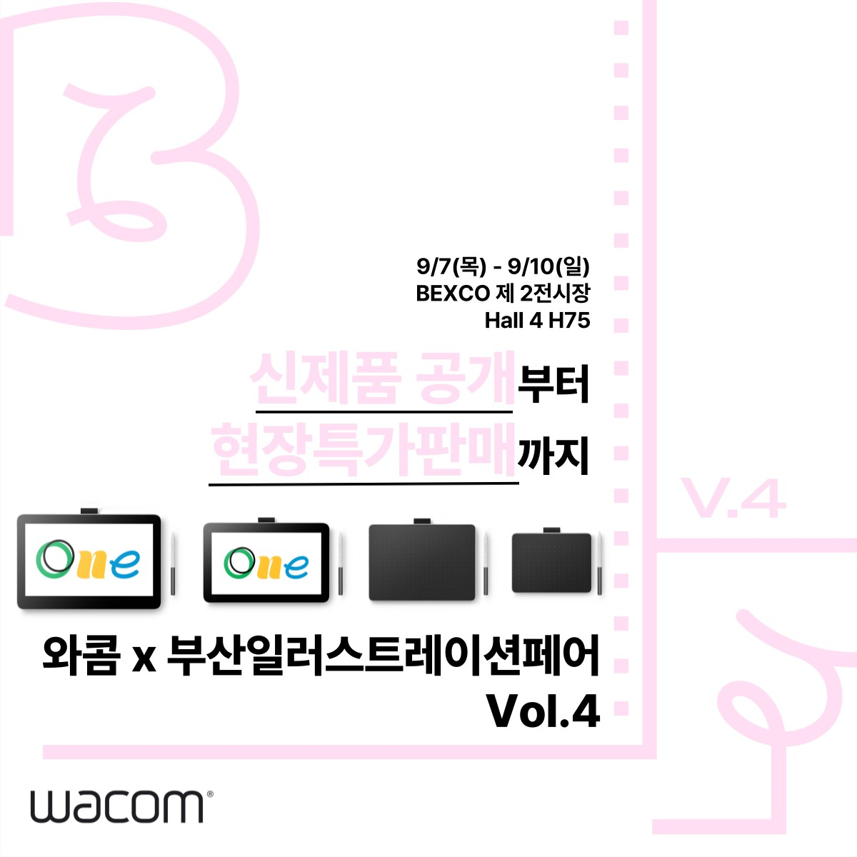 와콤이 올해 7월 개최된 서울일러스트레이션페어에 이어 부산일러스트레이션페어에도 참가합니다. 벌써 4회를 맞이하는 부일페인데요. 7일부터 10일 일요일까지 부산 벡스코에서 개최되는 ‘부산일러스트레이션페어(BIF) vol.4’에 참가해 와콤 부스를 운영하고, 특가 판매, 제품 데모존 등 특별한 프로그램을 마련해 여러분을 맞이할 예정입니다.