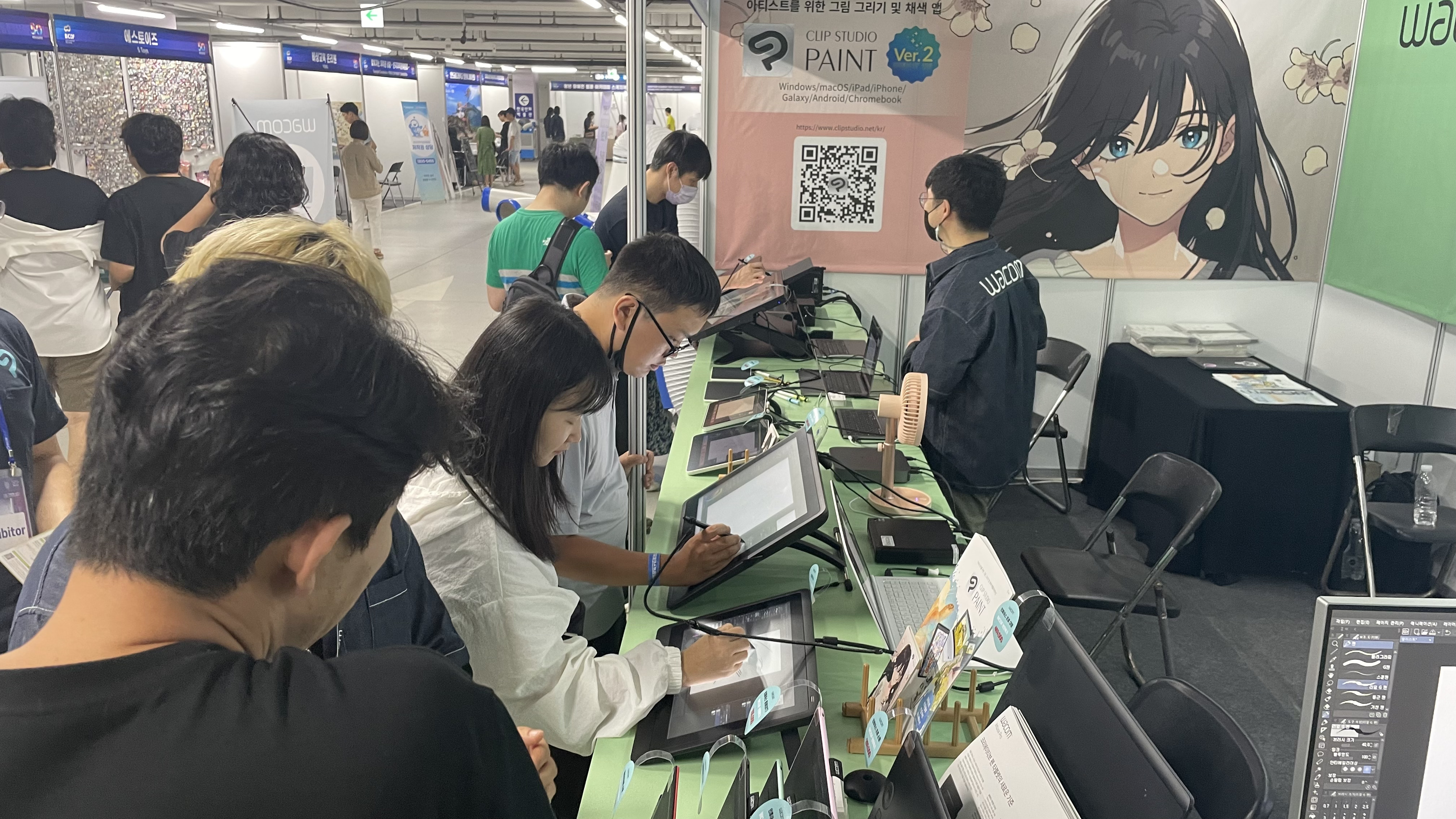 와콤 웹툰 세미나가 개최된 한국만화박물관 맞은편 지하 2층 주차장의 마켓관에서는 와콤 부스가 준비돼 있었습니다. 부천국제만화축제 특가로 와콤 전 제품 최대 31% 할인 혜택과 더불어 부천국제만화축제가 열리는 기간 동안 매일 선착순 100명에게 클립스튜디오 페인트 DEBUT 이용권을 증정하며 누구나 즐길 수 있는 행사를 마련했는데요. 한국 콘텐츠 산업의 꿈나무들은 물론 콘텐츠를 사랑하는 남녀노소가 즐길 수 있는 행사가 아니었나 싶습니다. 앞으로도 와콤 팬 여러분은 물론 한국 콘텐츠의 꿈나무를 만날 수 있는 다양한 온/오프라인 행사를 마련할 예정이니 많은 관심과 기대 부탁드립니다!
