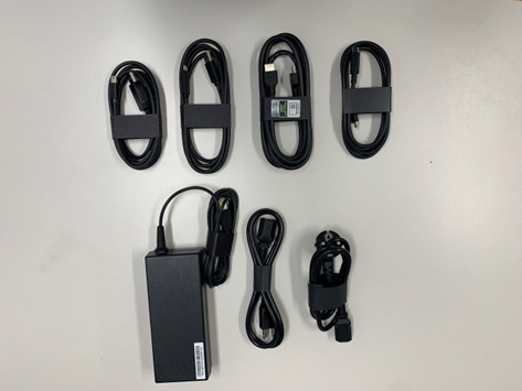 다음으로 PC 등의 기기 연결에 필요한 케이블들입니다. 와콤 신티크 프로 17은 USB-C 케이블, 110V와 220V 코드, 전원 어댑터까지 총 4개의 케이블이, 와콤 신티크 프로 22의 경우에는 USB-C 케이블, USB-C to USB Standard A 케이블, HDMI 케이블, Mini DisplayPort to DisplayPort 케이블, 110V와 220V 코드, 전원 어댑터까지 총 8개의 케이블이 동봉돼 있습니다.