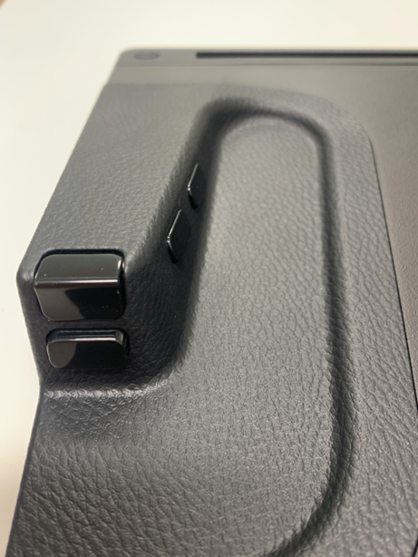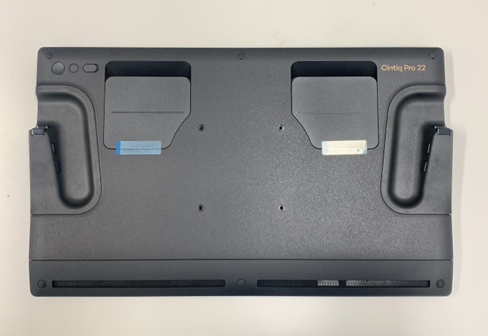 뒷면의 마지막은 신티크 프로 라인의 인체공학적 디자인을 확인할 수 있는 부분입니다. 디스플레이 후면 사용자의 손이 닿는 가장 자연스러운 위치에 8개의 익스프레스 키가 있습니다. 타블렛 유저가 가장 많이 활용하는 단축키를 각 버튼에 설정해 사용할 수 있는데요. 좌/우측 각각 4개씩 배치돼 한 손에는 펜을, 다른 한 손으로는 익스프레스 키를 컨트롤하며 편리하게 작업할 수 있습니다. 사용자 편의성을 위해 사소한 부분까지 고려한 디자인이라고 할 수 있겠네요.